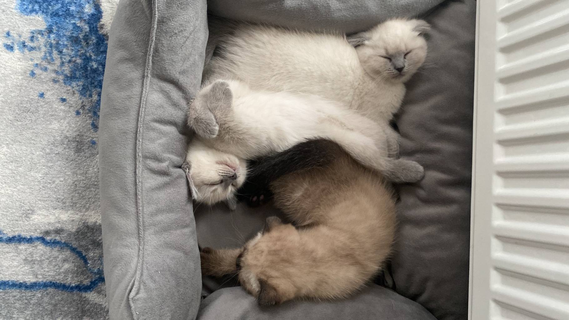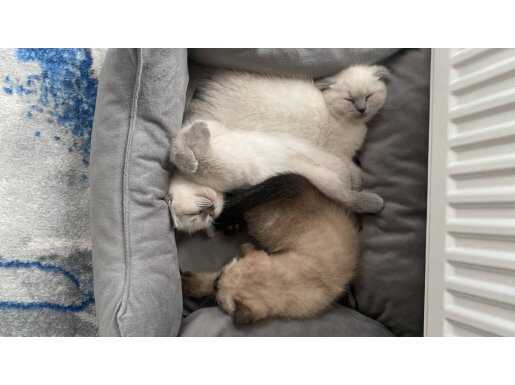 Üretim olmayan ilk batın doğumun meyveleri bu British Shorthair yavruları yeni yuvalarını bekliyor.
