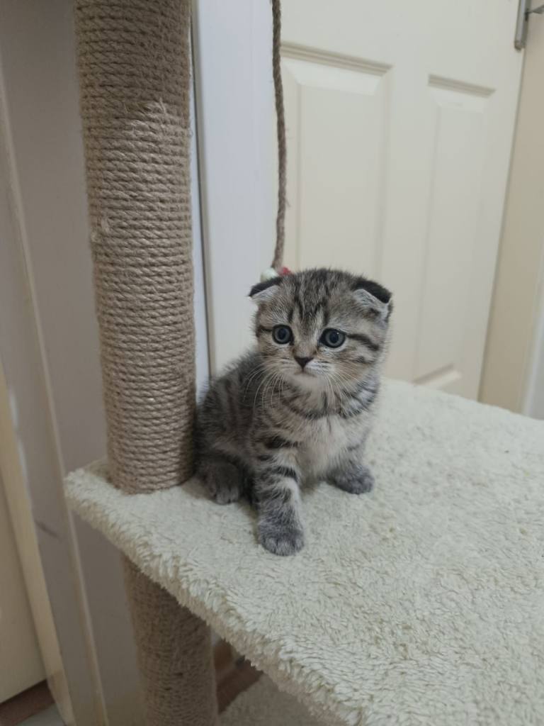 Baba Scottish anne British, tam 2 aylık bu Scottish Fold miniği İstanbul Esenyurt’ta yuva bekliyor.