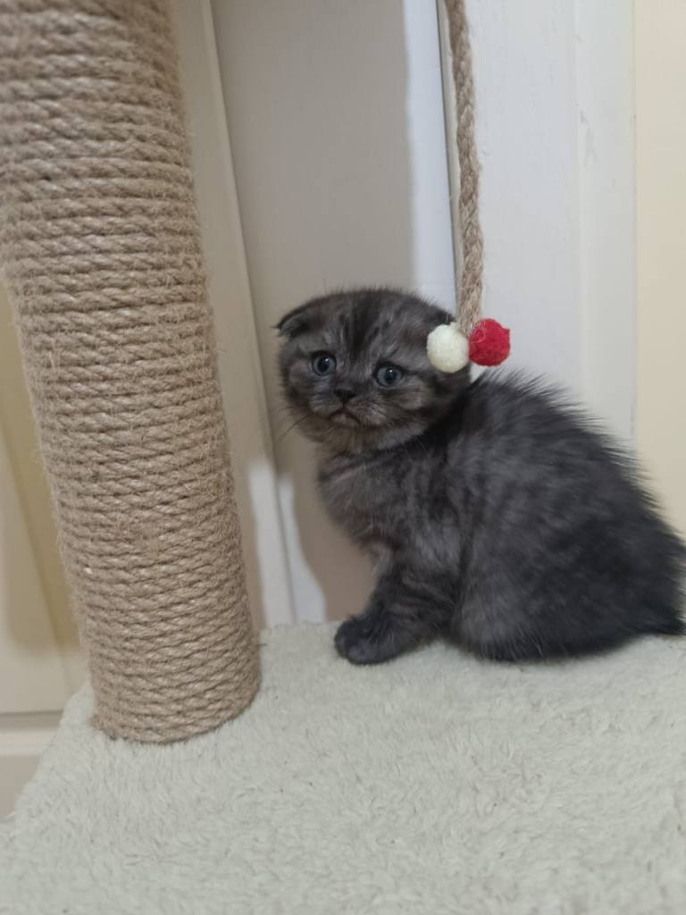 Gri-füme tonlu mermer desenli kürkü ve basık kulaklarıyla tam bir ev neşesi. Uysal karakterli, cana yakın bu fıstığı kaçırmayın, hemen iletişime geçin!