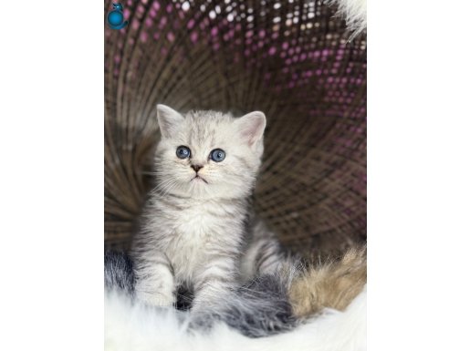 Ender bulunan turkuaz göz rengi ile büyüleyen gri beyaz desenli tontiş yanak British Shorthair bebeklerimiz için yuva arıyoruz.