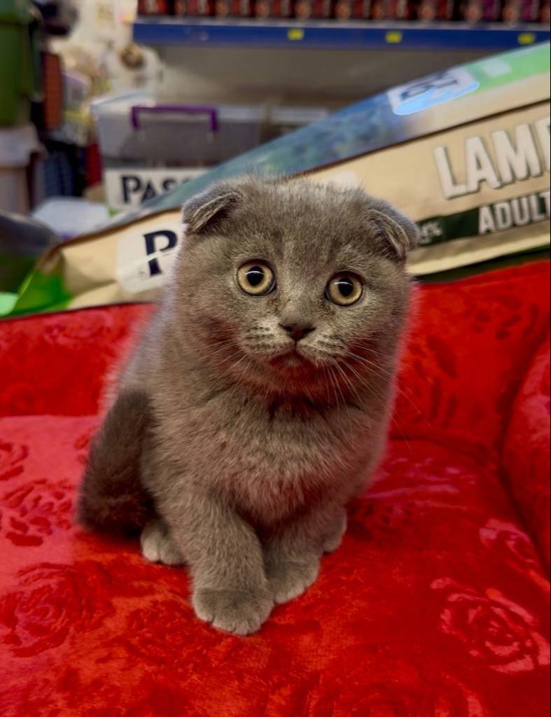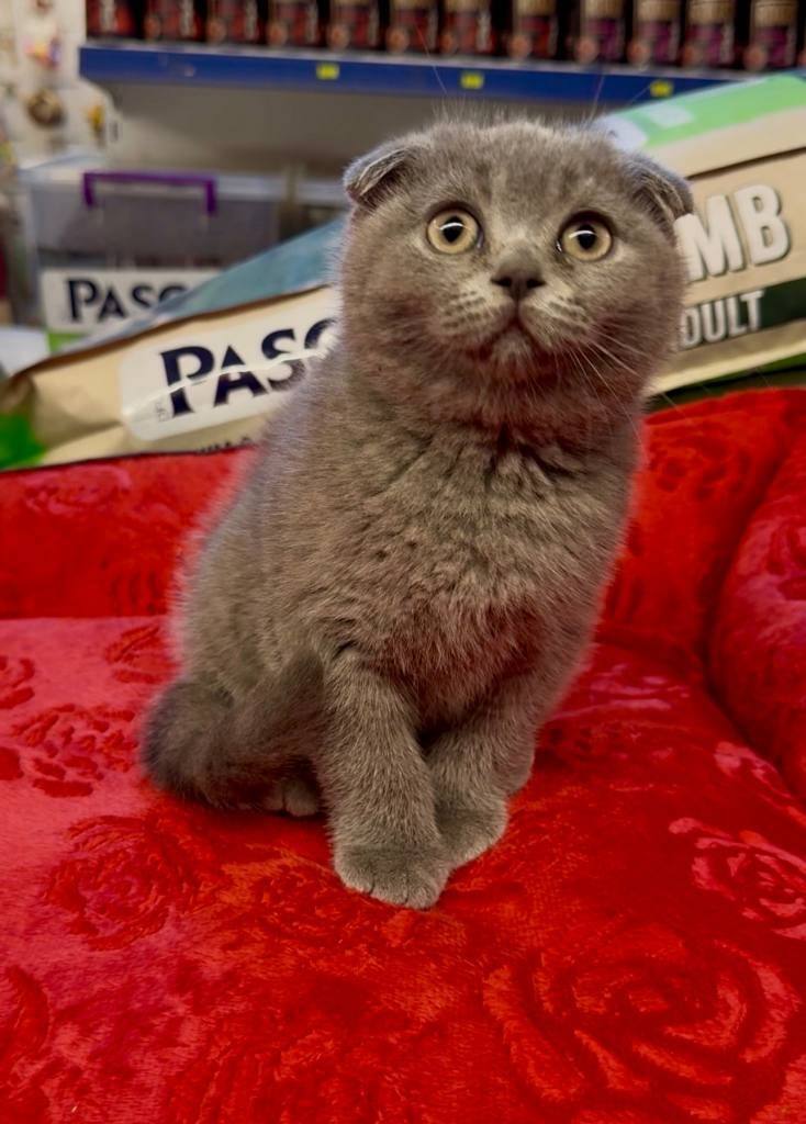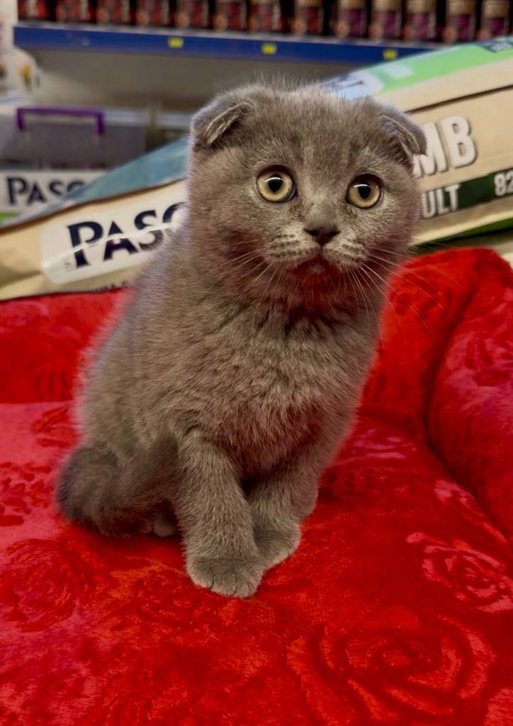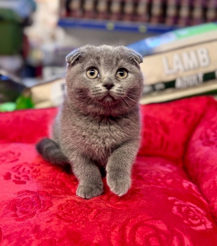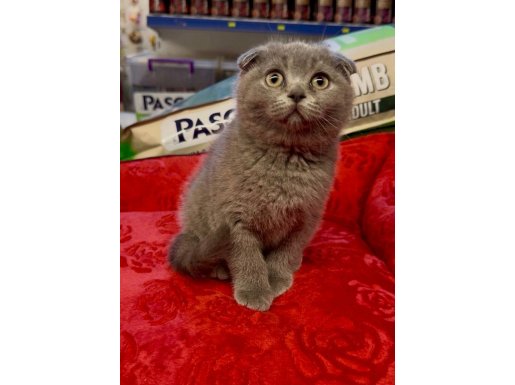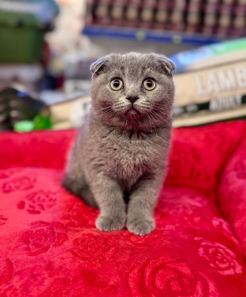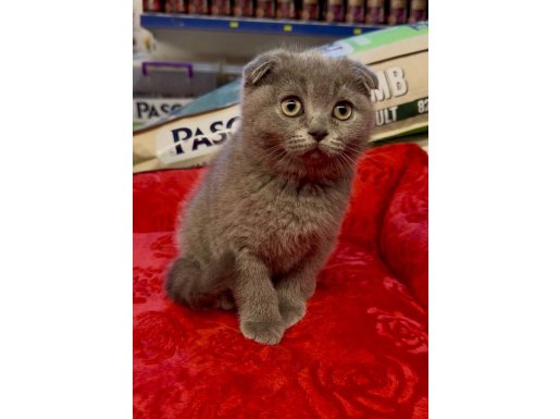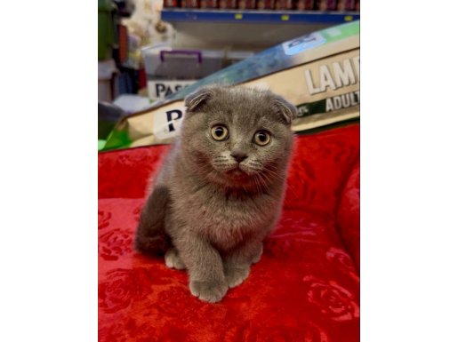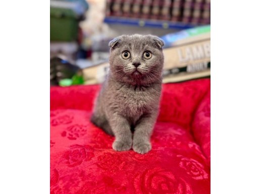 Bu Scottish Fold yavrusu, kavisli kulak yapısı ve hipnotize edici derin bakışlarıyla gerçek bir karakter abidesi.