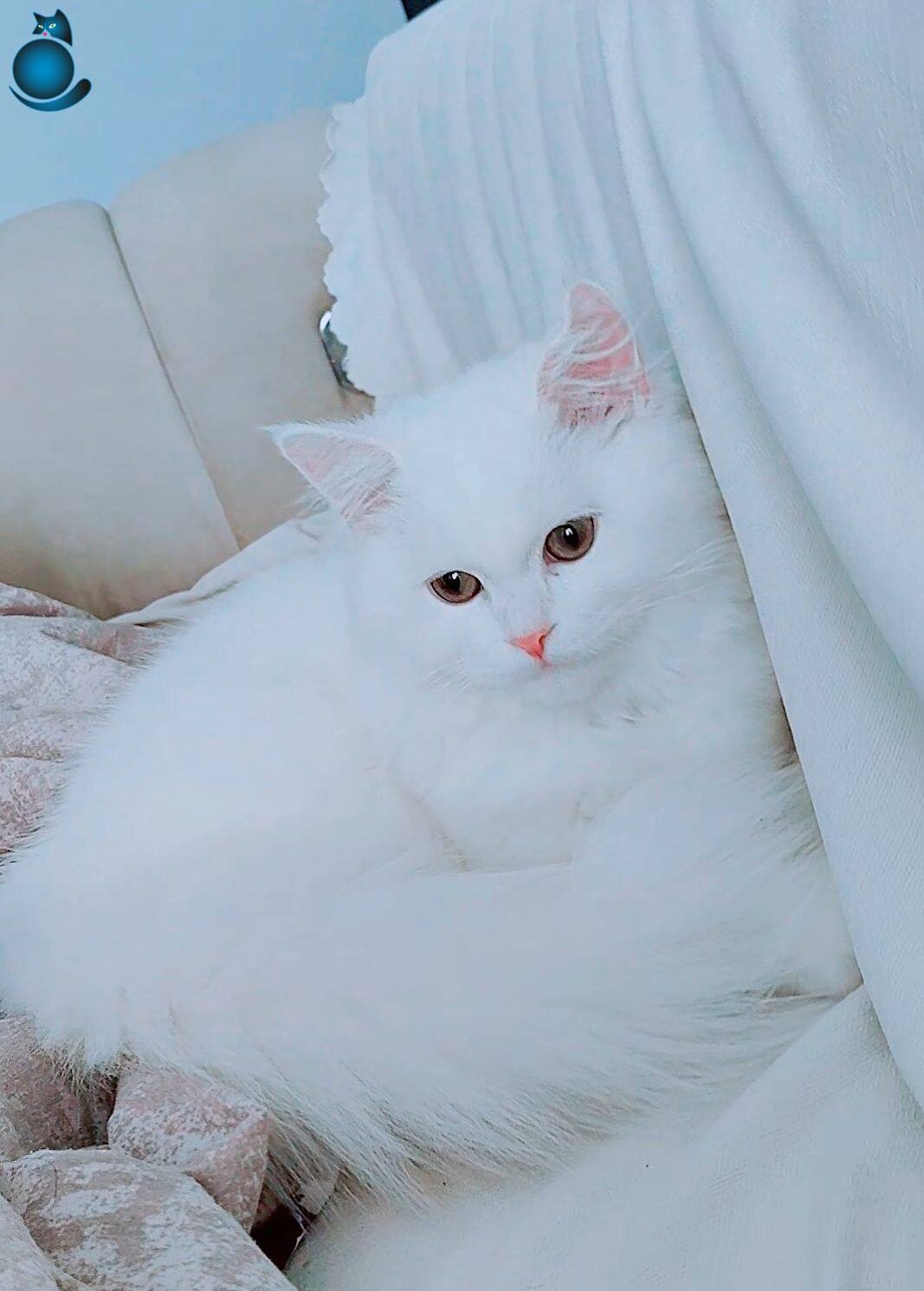 9 aylık uzun tüylü tamamen bembeyaz çok uysal ev kedisi