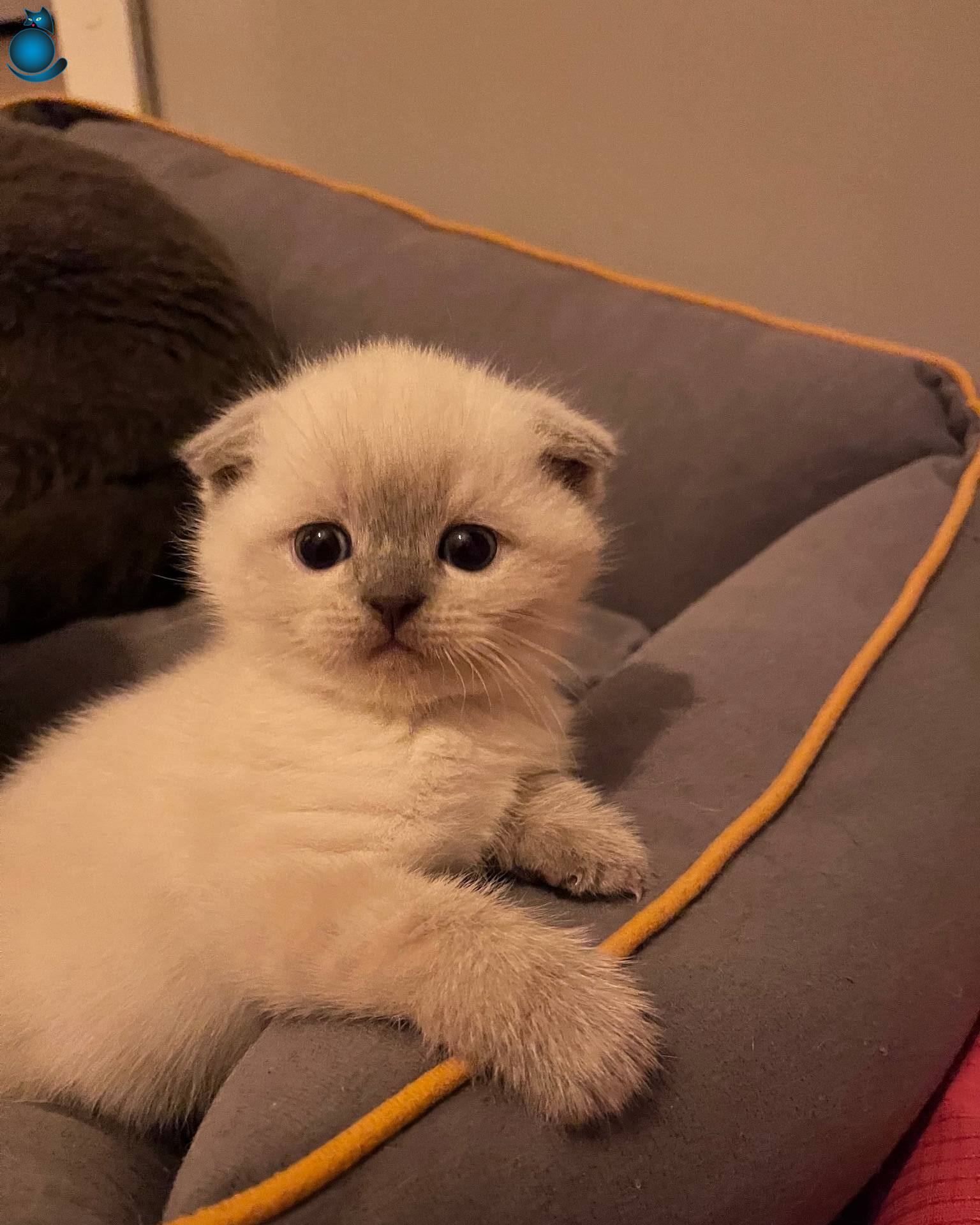 Tuvalet eğitimi mevcut ve kuru mamaya geçti. 75 günlük, sosyal ve sağlıklı Scottish Fold yavrumuz yeni yuvasını bekliyor.