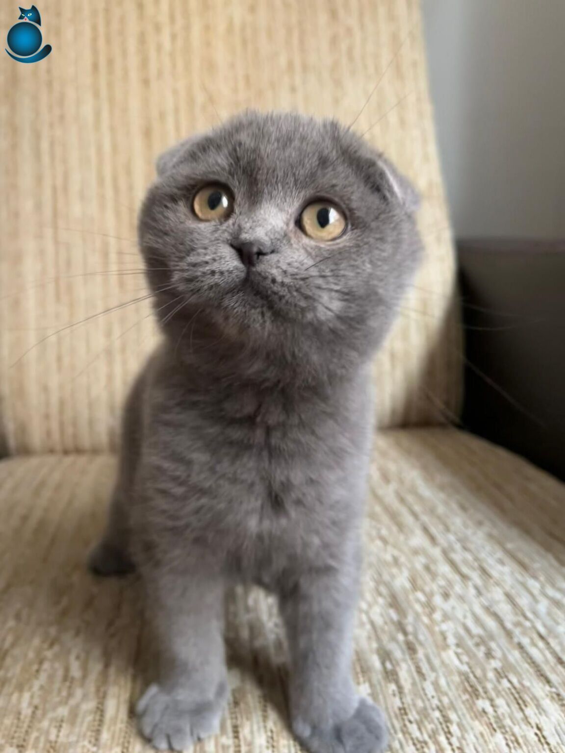 Kum eğitimi oturmuş olan yumuşak huylu miniğimiz, karakteristik kıvrık kulakları ve duman rengi kadifemsi tüyleriyle tam bir kucak kedisidir.