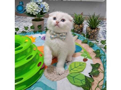 Ev ortamında doğup büyüyen, tuvalet eğitimli ve kuru mama yiyen uysal Scottish Fold yavrularımız teslime hazır.