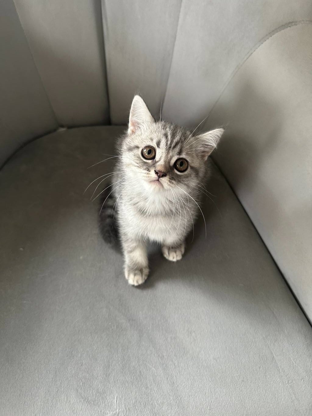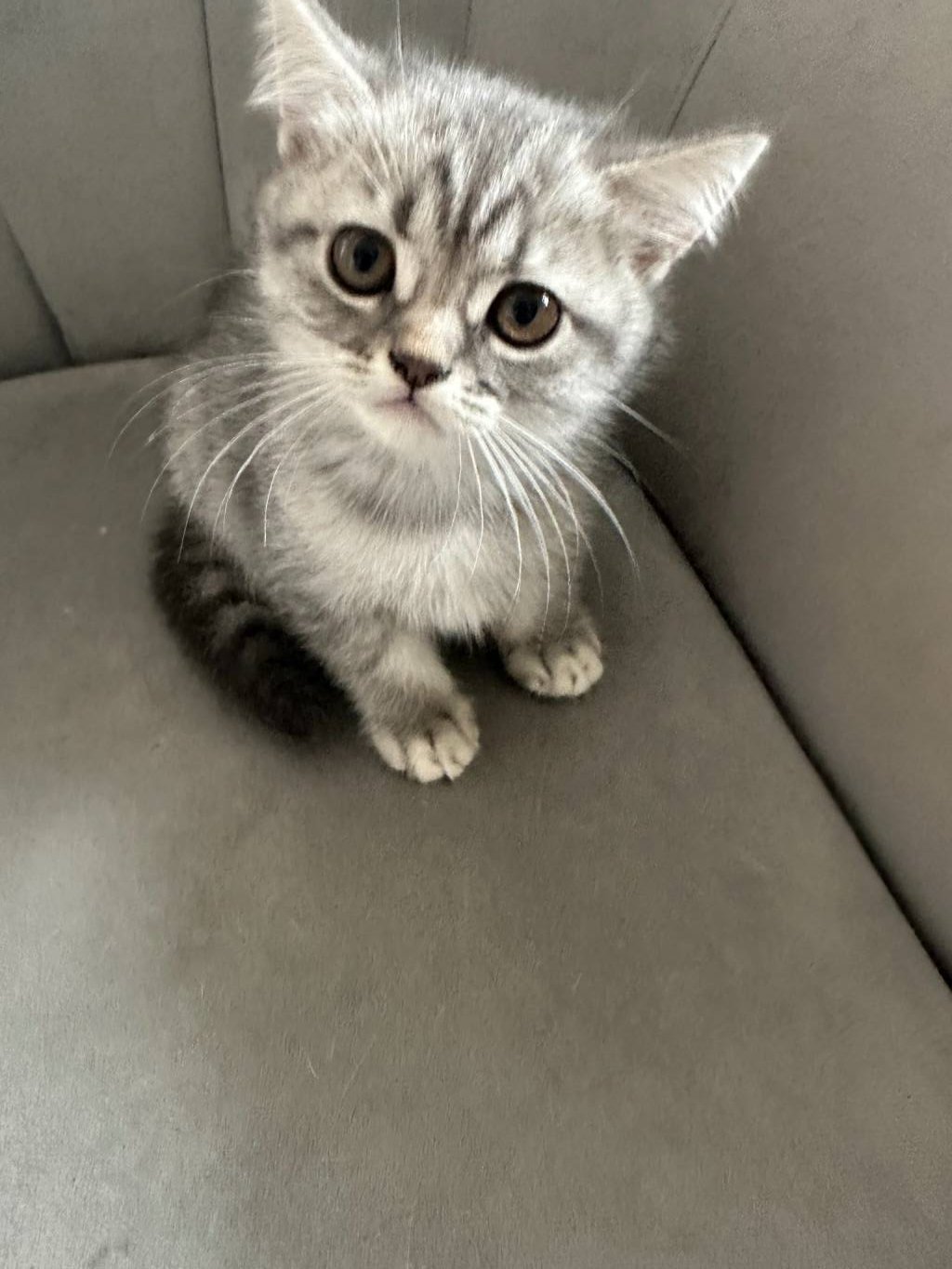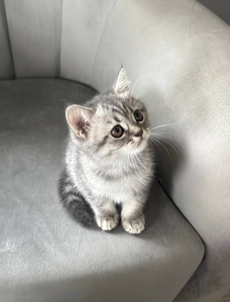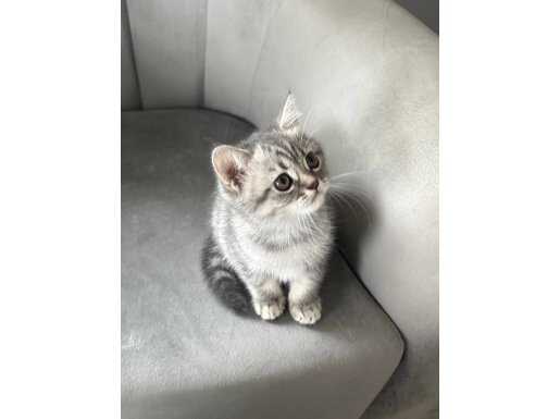 Ev ortamında sevgiyle büyüttüğümüz, gri hareleri belirgin British Shorthair yavrumuz yeni yuvasını bekliyor. İç dış parazitleri yapıldı, WC ve mama eğitimi tamdır. Sosyal ortamlarda tüm bakışları üzerine çekecek bu uslu miniği görüntülü arayıp hemen görebilirsiniz.