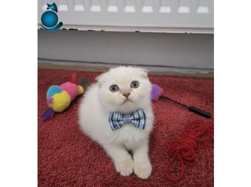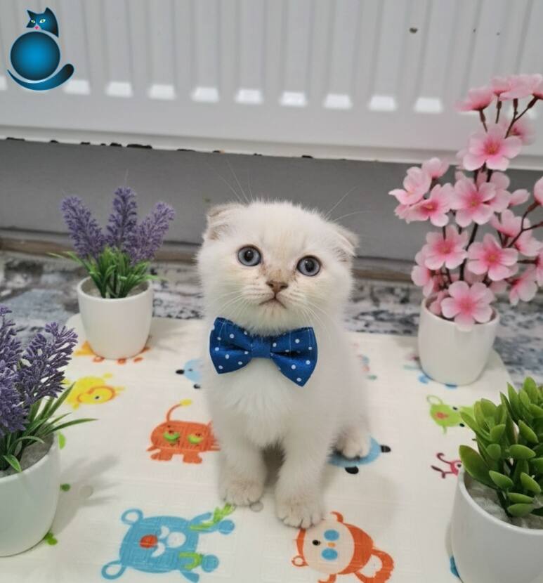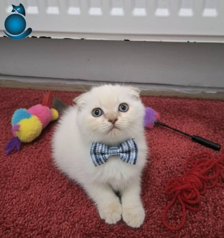 Mavi papyonuyla gerçek bir beyefendi edasındaki Scottish Fold yavrumuz ev ortamında sevgiyle büyüdü.