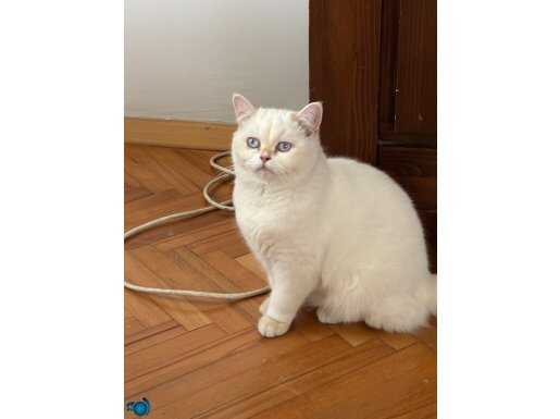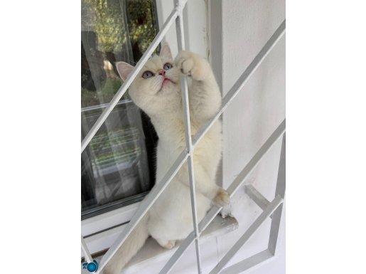 Anne ay1233 ve baba ny122 tam şecereli hatlardan gelen bu özel British Shorthair, parlak beyaz kürkü üzerindeki asil altın dokunuşlarla dikkat çekiyor. Yedi aylık olan bu aktif erkek, karma ve parazit aşıları tamamlanmış şekilde, tam şecereli veya pet olarak yeni yuvasına gitmeye hazır durumdadır.