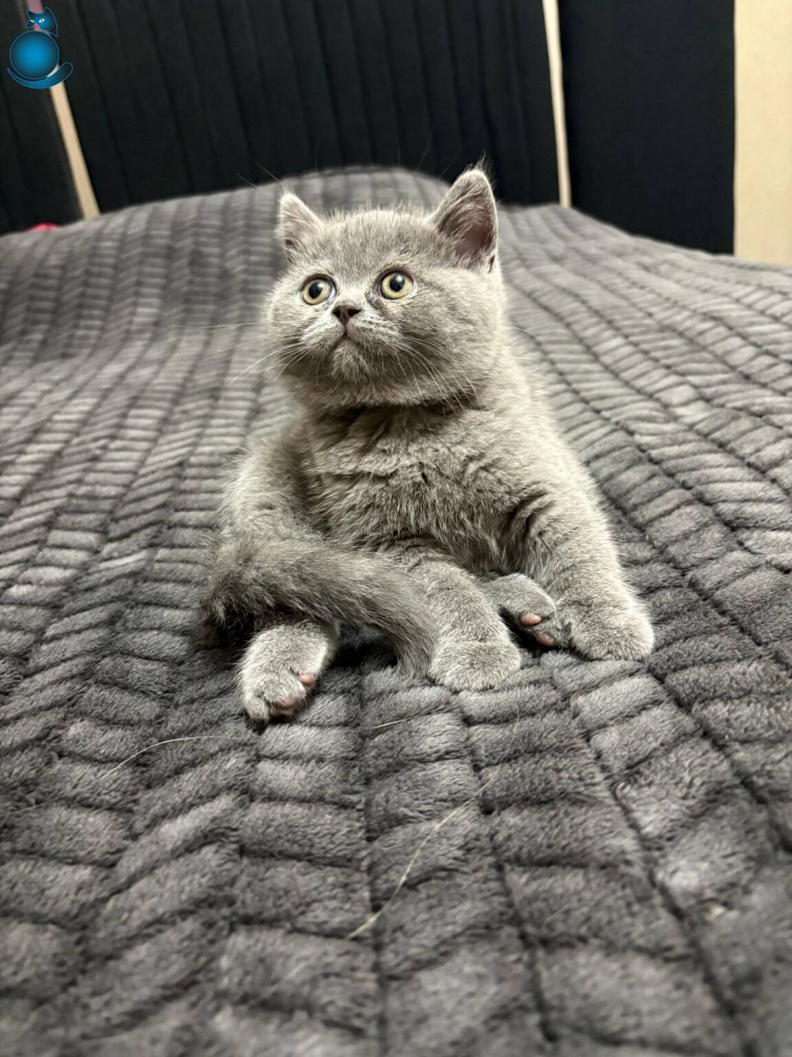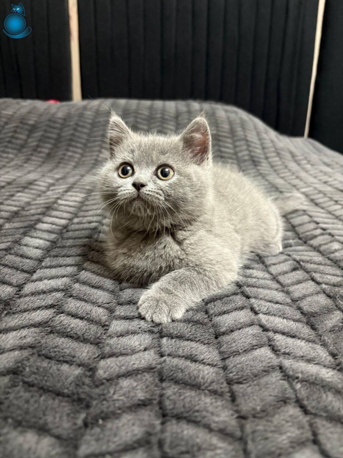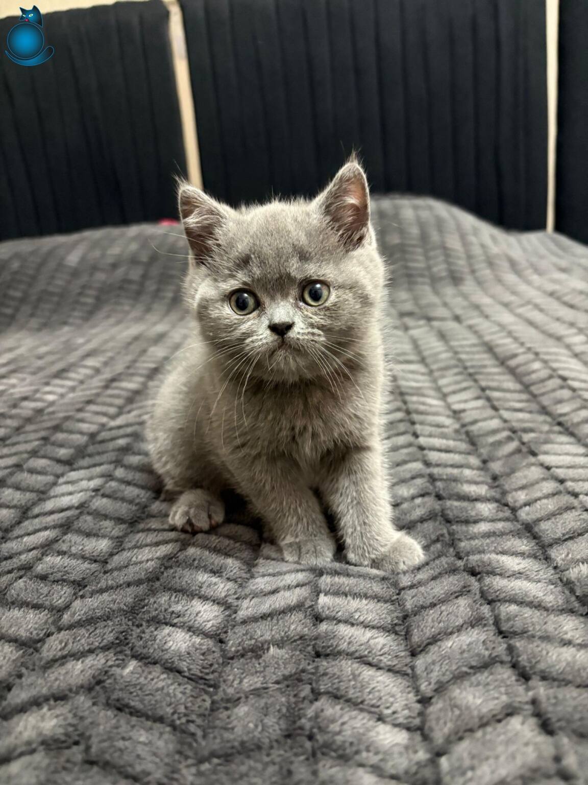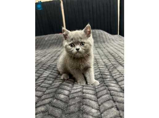 British Shorthair yavrularımız iki aylık oldu; pofuduk gri kürkü ve oyuncu tavırlarıyla evinize neşe katacaklar.