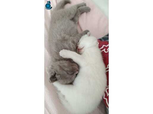 Erkek ve dişi biritish yavru kediler gri olan erkek beyaz olan dişidir. 1 aylıklar
