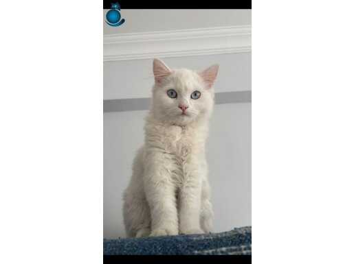 Göz alıcı beyaz kürkü ve asil duruşuyla 14 Ağustos doğumlu bu Ankara kedisi yeni yuvasını bekliyor.