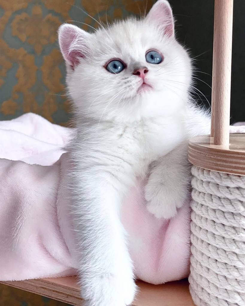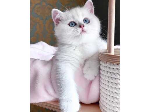 Tuvalet eğitimli, tüy dökmeyen bu Silver British Shorthair miniği, buğulu bakışları ve ipeksi kürküyle evinize neşe katacak.