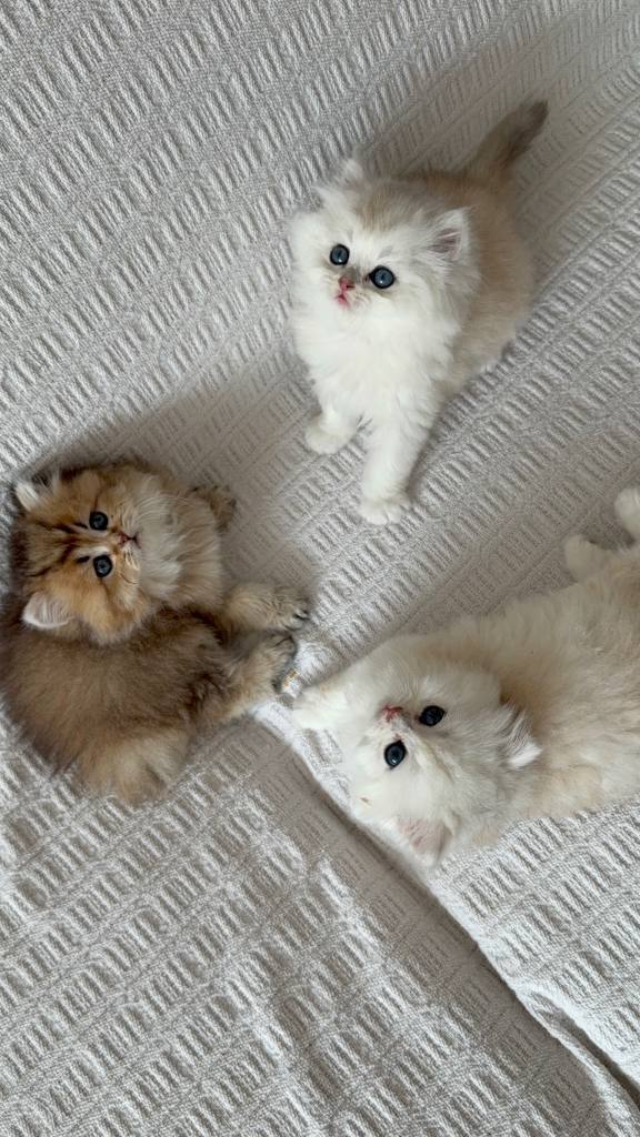 Safkan bebeklerimiz, şecereli anne ve babadan dünyaya geldi. Tuvalet eğitimlerini tamamlayıp kuru mamaya geçen bu British Longhair minikleri, kristal bakışları ve ipeksi kürk yapılarıyla tam bir görsel şölen sunuyor.