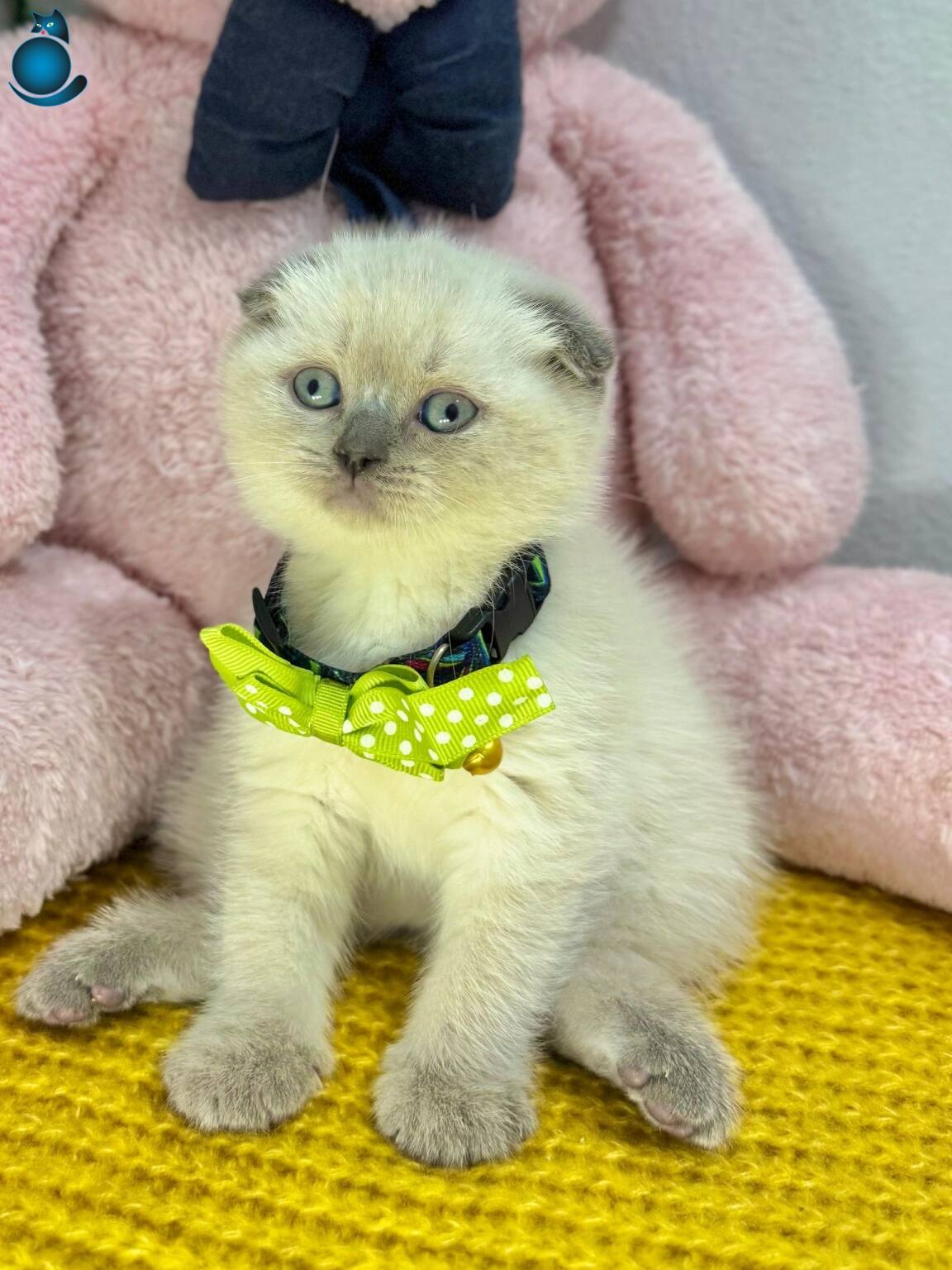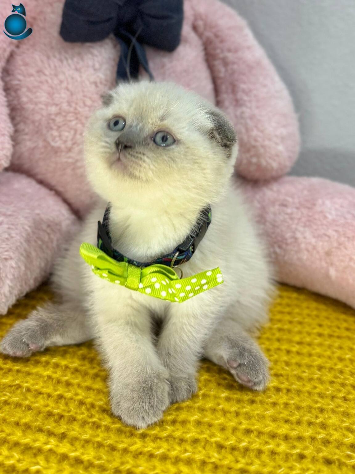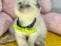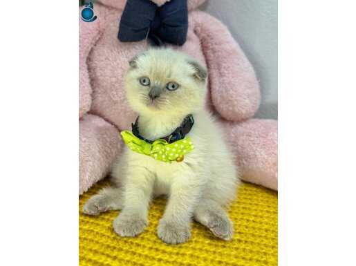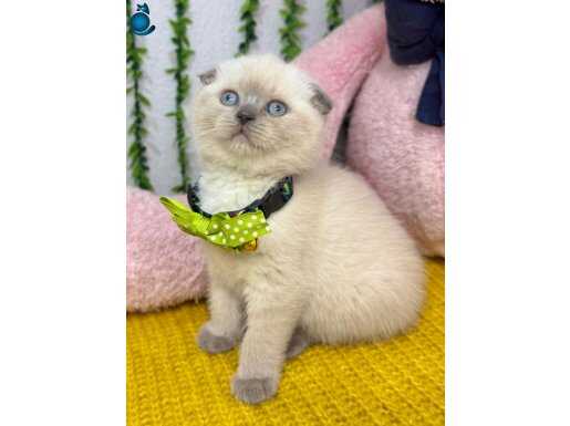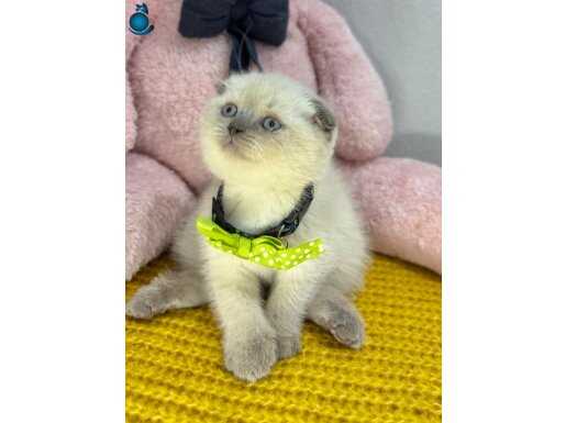 Puantiyeli tasması, maviş gözleri ve kırık kulaklarıyla efsane güzel gri burun bluepoint Scottish Fold yavrumuz ev ortamında doğup büyüdü, bakımı özenle yapıldı.