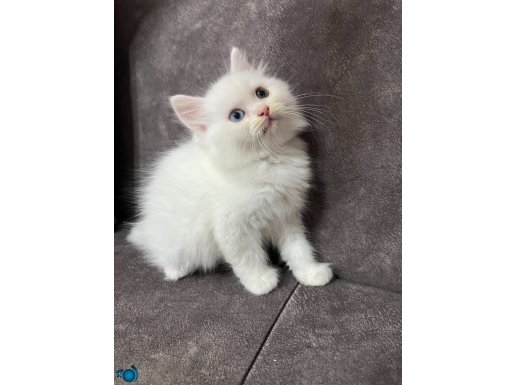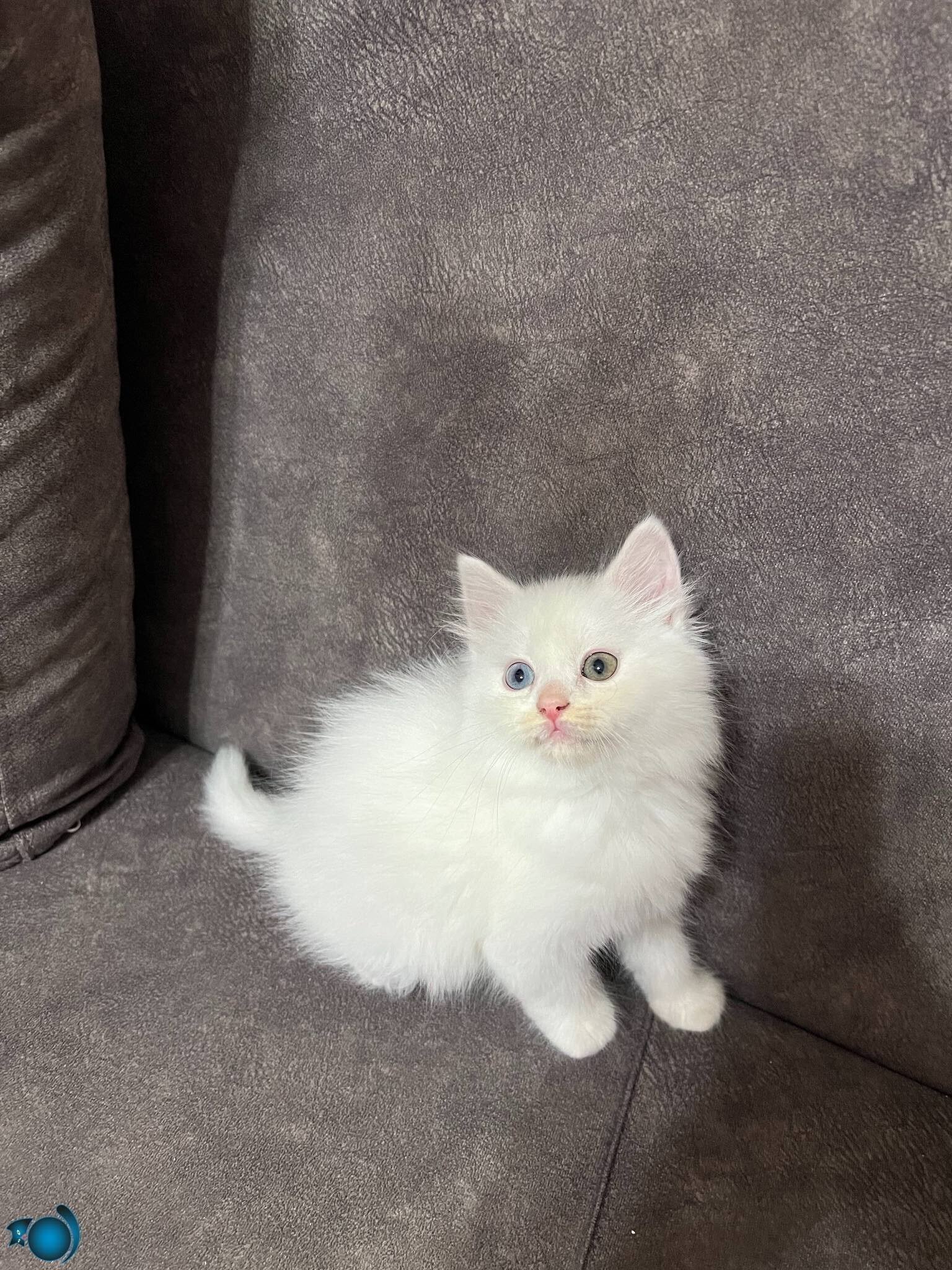 İç ve dış parazit uygulamaları tamamlanmış, iki aylık bu kar beyazı erkek Van yavrusu yeni yuvasına gitmeye hazır. Karakteristik yüz hatları ve bulut gibi yumuşak kürküyle dikkat çeken bu minik, sosyal mizacıyla evinizin neşesi olmaya aday.
