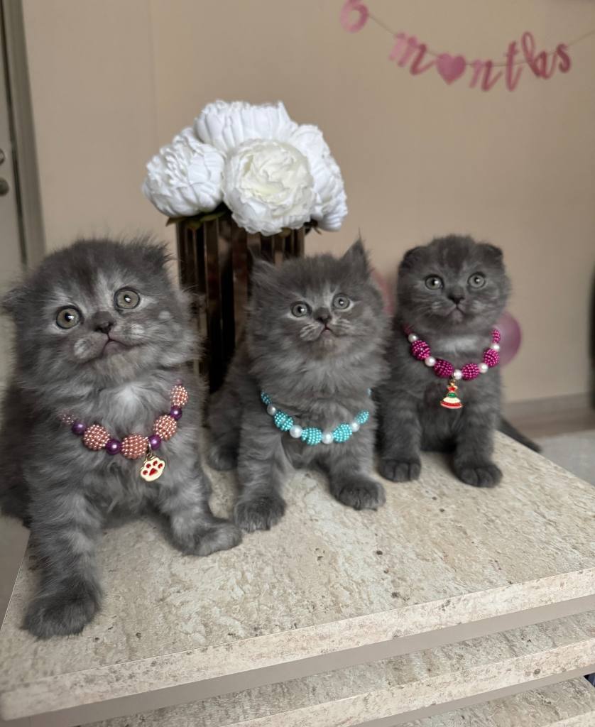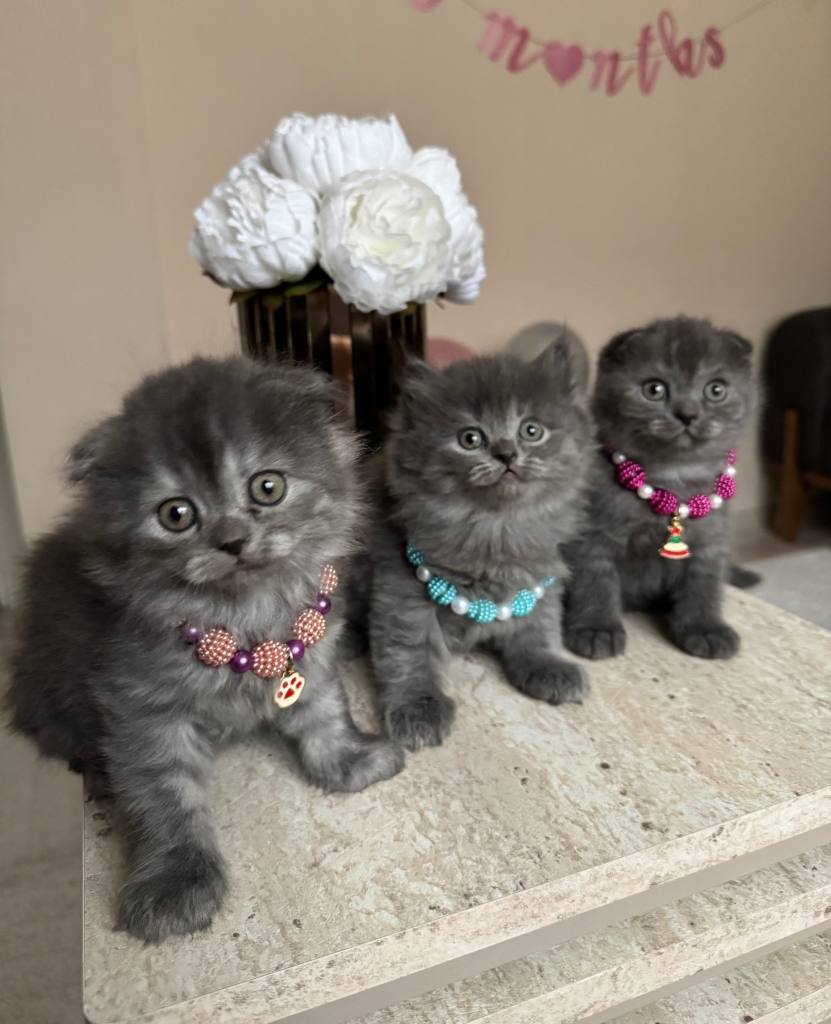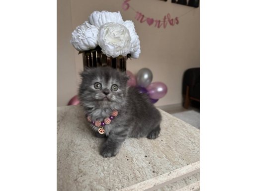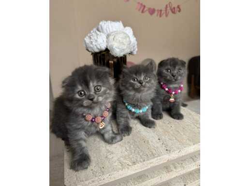Shorthair ve Longhair 2 aylık dişi ve erkek yavrular, anne sütünü tam alarak kuru mamaya geçti. Tuvalet eğitimli bu Scottish Fold ufaklıklar, asil gri kürkleri ve takılarıyla tam bir ikon! Sosyal ortamlarda tüm bakışları üzerinize çekecek bu cana yakın dostları kaçırmayın.