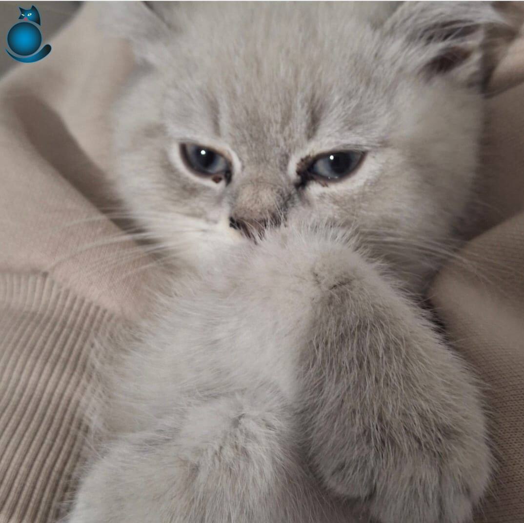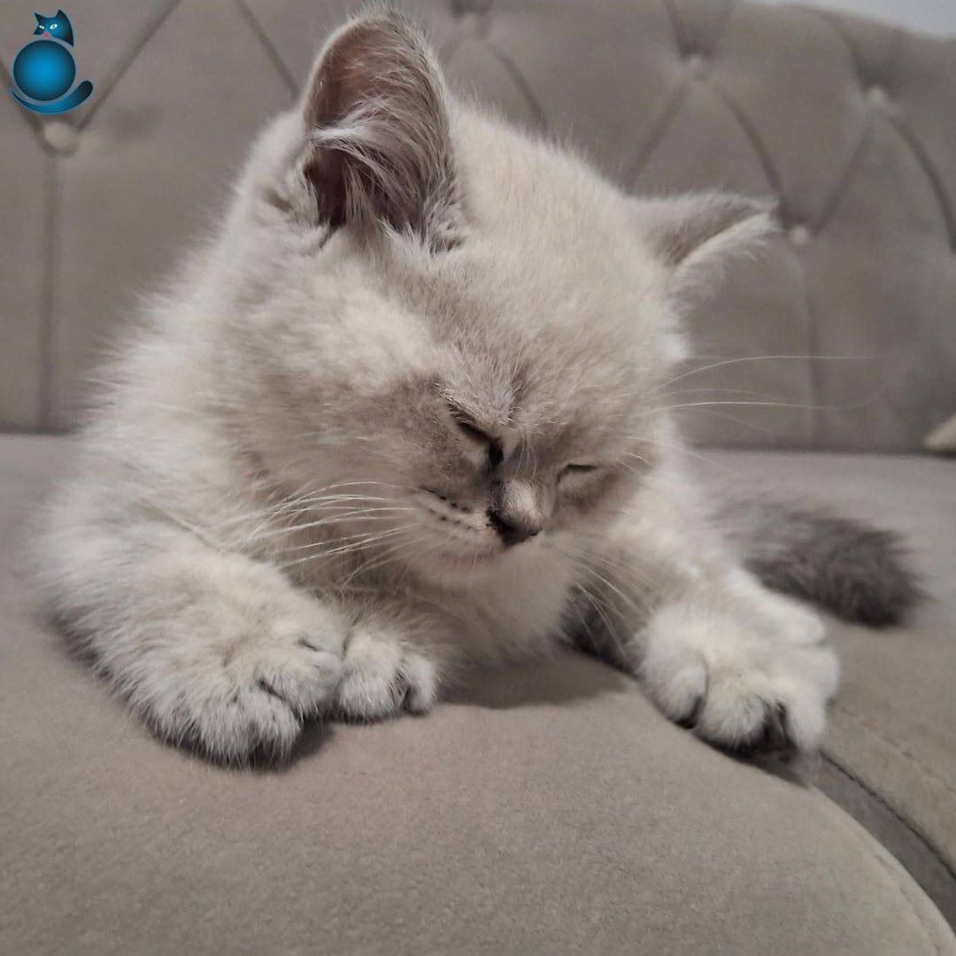 İpeksi grimsi beyaz kürküne eşlik eden kontrast pati renkleri ve British Shorthair ırkının en safkan genetik görsellerini taşıyan bu ufaklık evinizin neşesi olmaya aday.