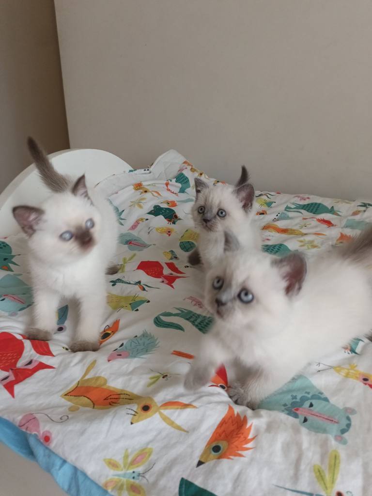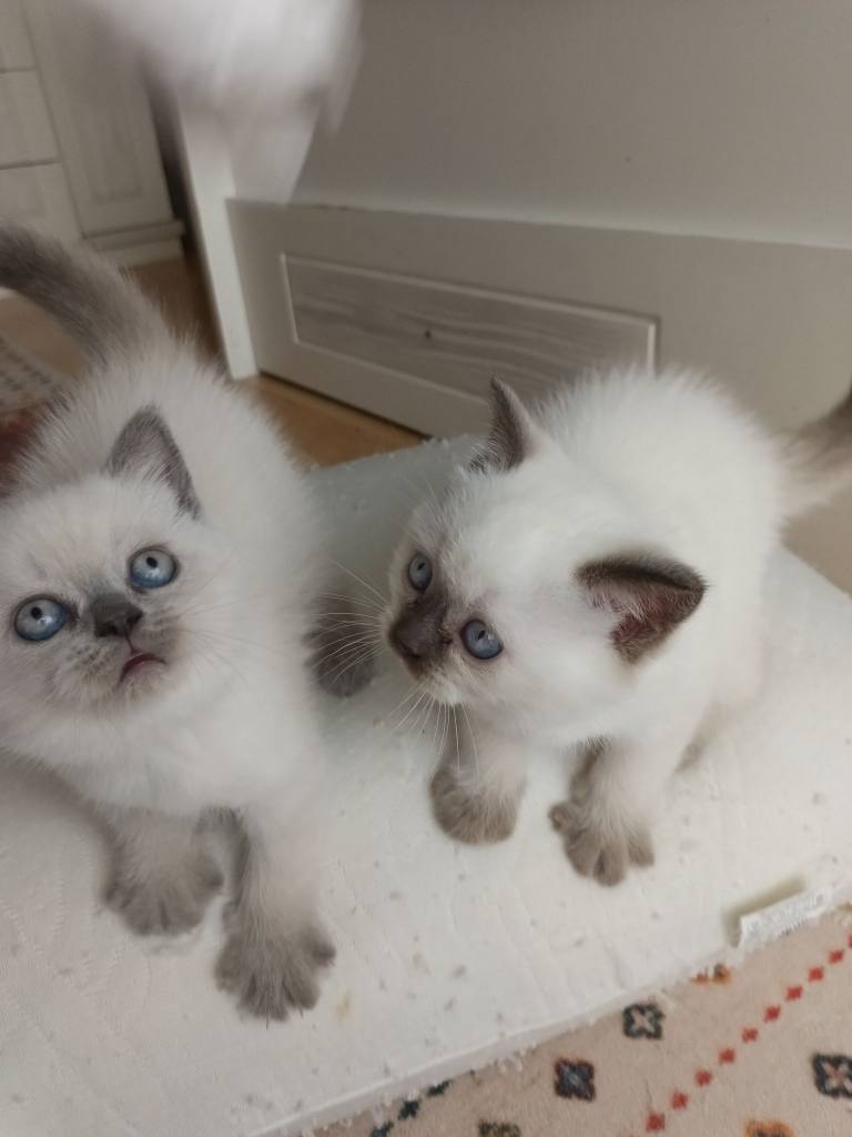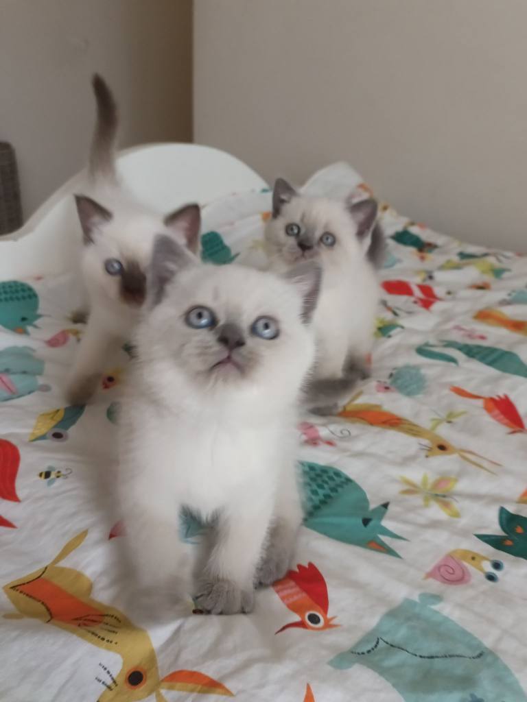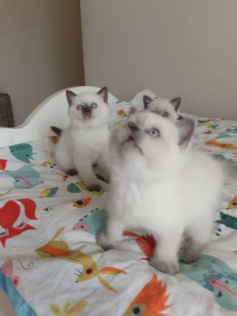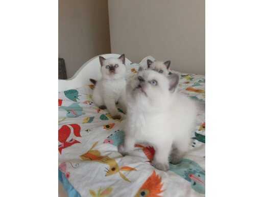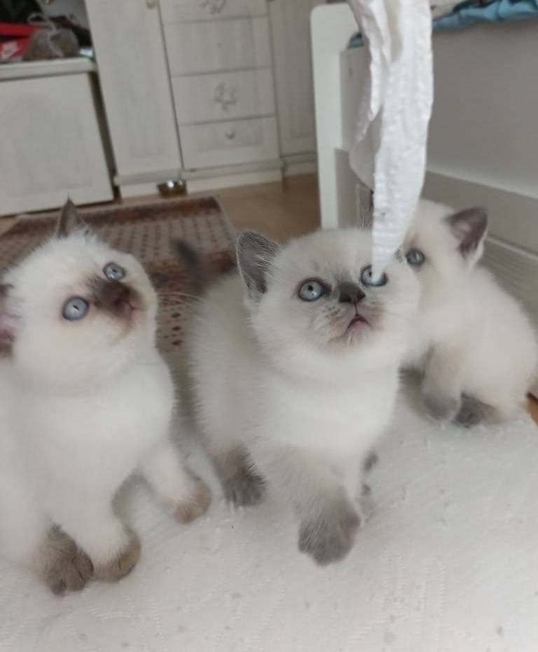 10 Şubat doğumlu, kum eğitimli bu British Blue Point ufaklıklar kuru mama yiyor.
