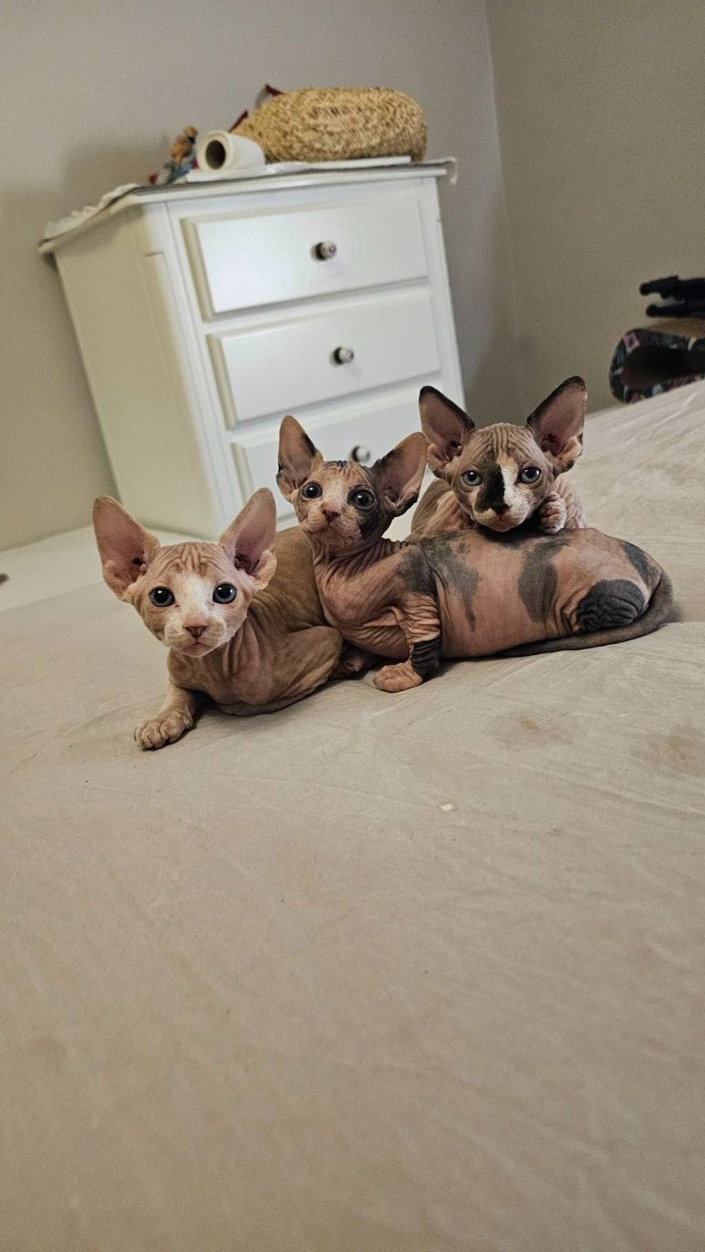 Bu çok özel, benzersiz görünümlü Sphynx yavruları için yerim kısıtlı ve acelem var. Çok uysal, sevecen ve tamamen tüy dökmedikleri için ev için mükemmel bir hijyenik dost olurlar.
