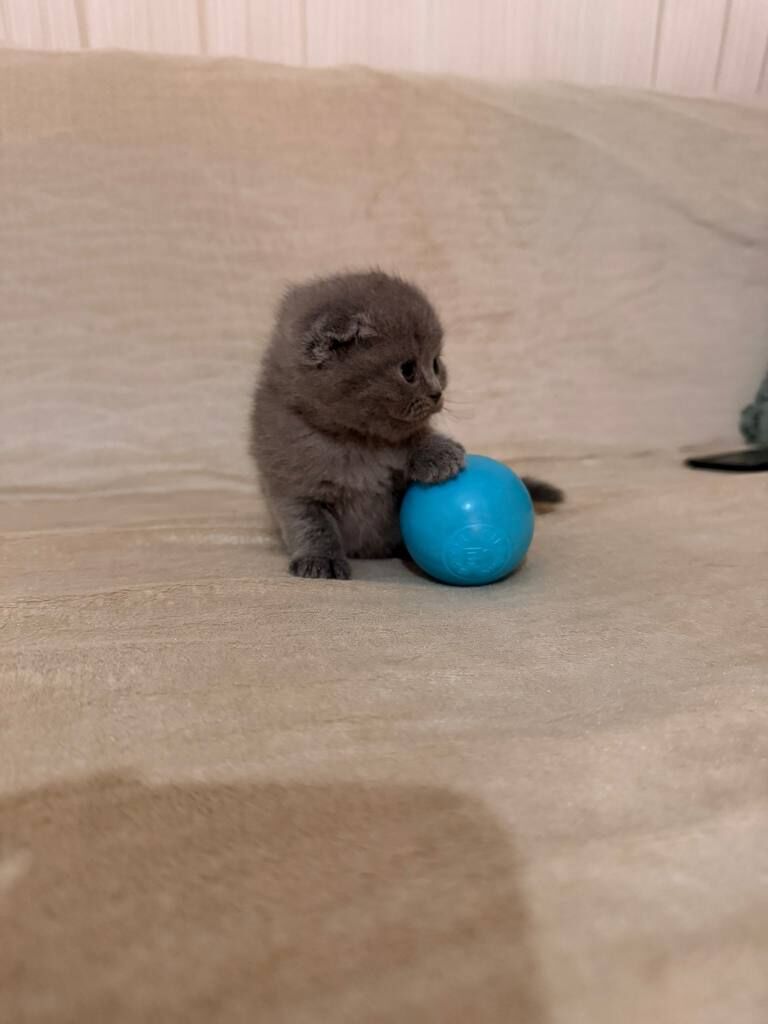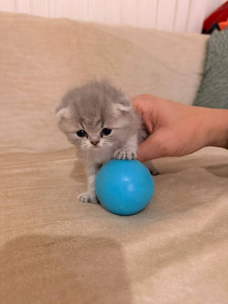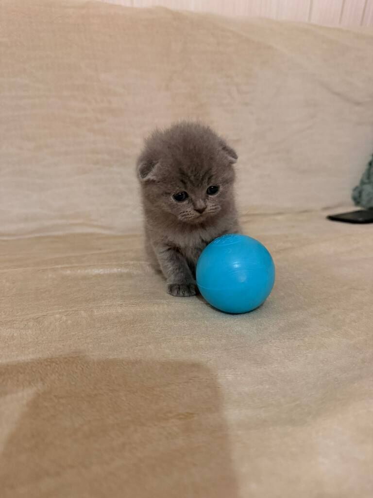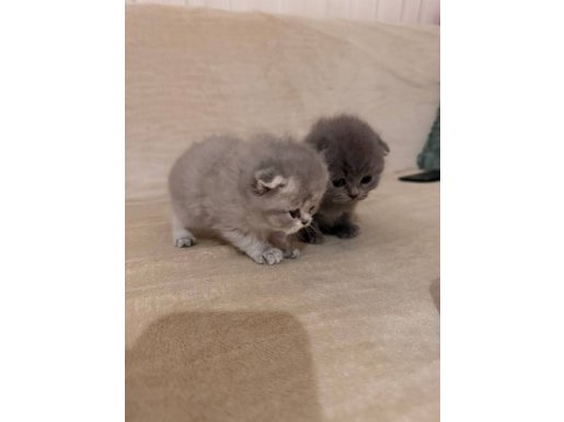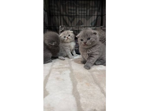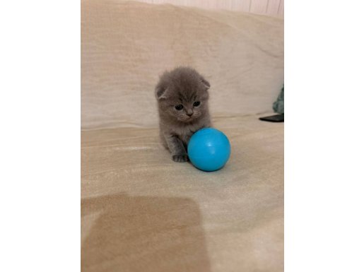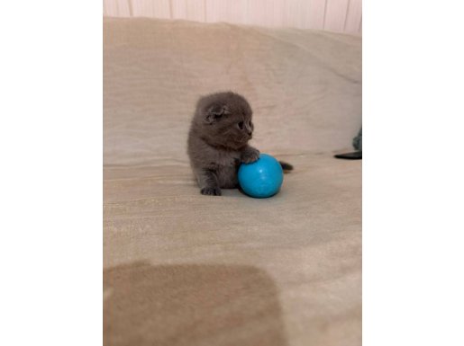 Bursa içi elden teslim 50 günlük, tüy dökmez, uysal karakterli gri Scottish Fold. Anne sütünden kesildi, kuru mama yiyor. Kum eğitimi tam.