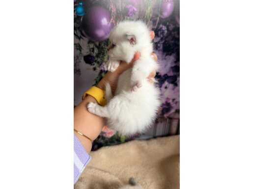 Munchkin Cüce kedi Martta teslim edilmek üzere rezerveye açıktır. 2 aylıktan küçük olan bu fıstık yeşili bakışlı miniğimiz kısa bacak yapısı ve ipeksi beyaz kürküyle tam bir sevgi yumağıdır.