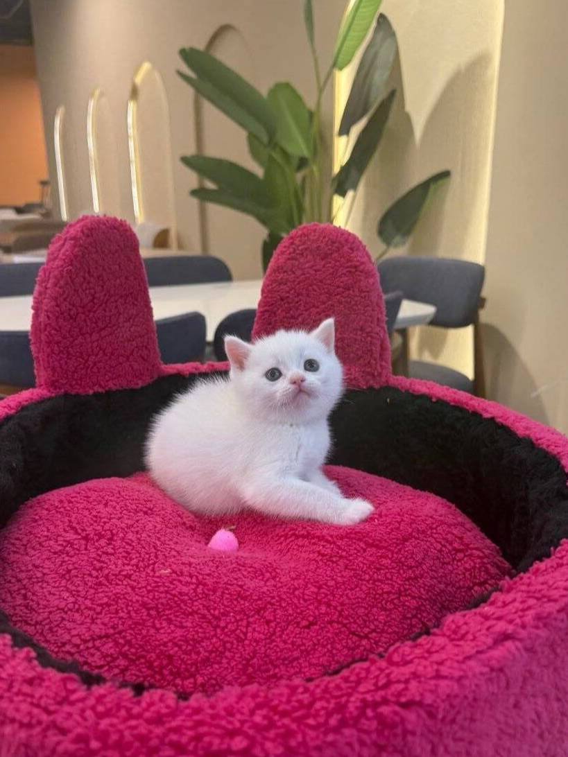 Kar beyazı postu ve masum bakışıyla bu British Shorthair bambaşka.