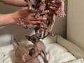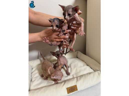 Sphynx yavrularımız tamamen tüysüz, çok oyuncu ve sevgi doludur. Ev ortamında büyüdüler ve kum kabını kullanmayı biliyorlar. Sağlıklı, sosyal ve insanlarla çok iyi anlaşan yavrular. Üzerlerindeki özel benek ve desenler onları çok daha güzel ve farklı yapıyor. Sevgi dolu bir aileye gitmelerini istiyoruz.