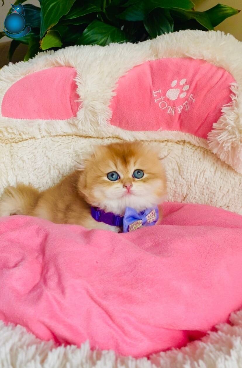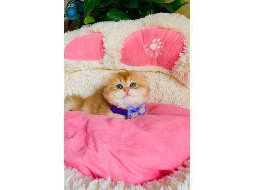 Anne sütünü tam almış, sosyal ve tuvalet eğitimli bu fıstık yeni yuvasını bekliyor. Scottish Fold ırkının o karakteristik kıvrık kulakları ve kehribar bakışlarıyla birleşen yoğun altın parıltılı kürkü gerçekten büyüleyici.