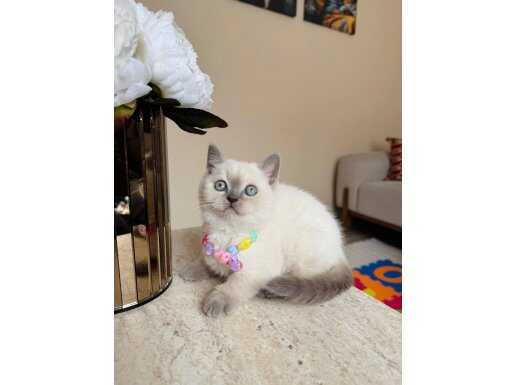Safkan British Shorthair Blue Point yavrularımız sütten kesildi, kuru mama ve kum disiplinine girdi.