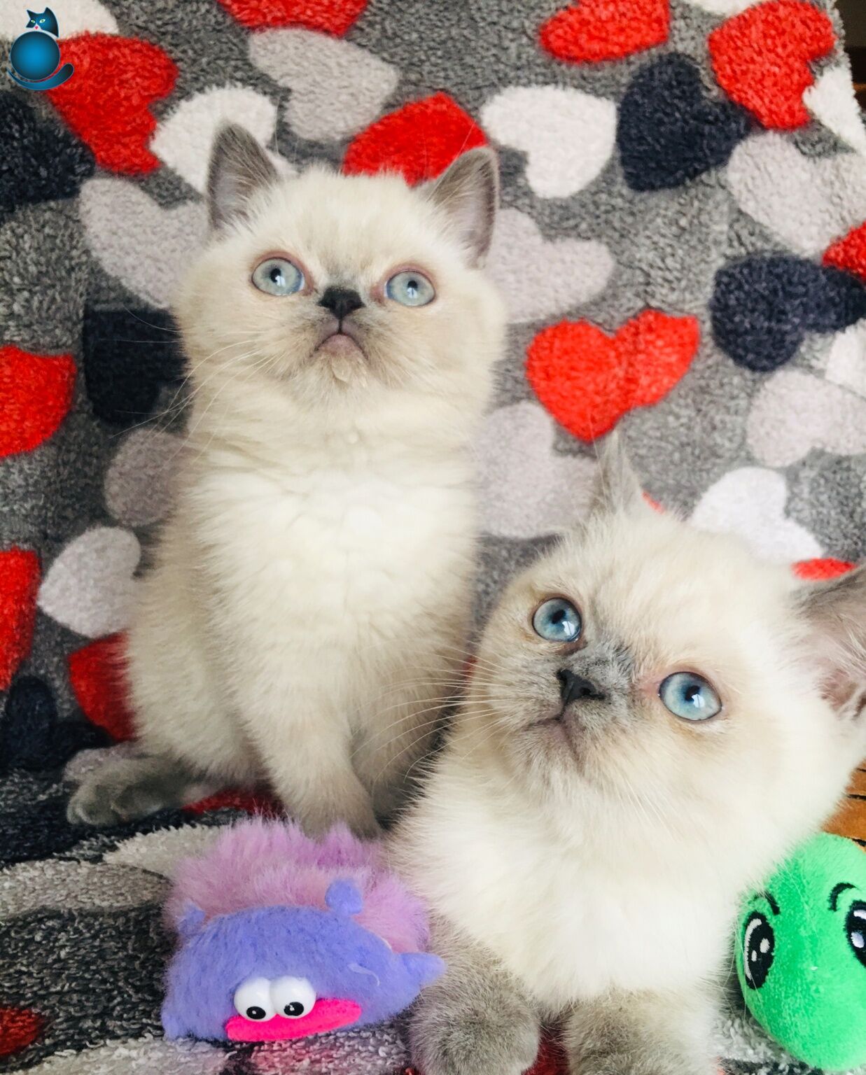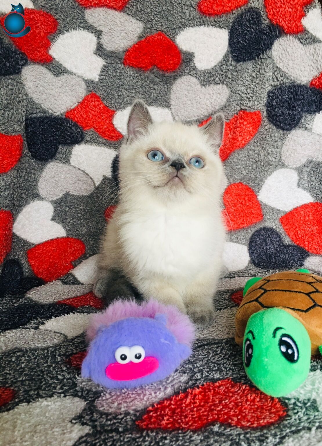 Deniz mavisi yuvarlak gözleri ve kusursuz yüz hatlarıyla büyüleyen safkan Blue Point yavrularımız; tuvalet eğitimini tamamlamış, anne sütüyle gelişimini bitirip kuru mamaya geçiş yapmış, bakımlı ve sağlıklı şekilde yeni yuvalarına gitmeye hazırdır.