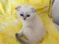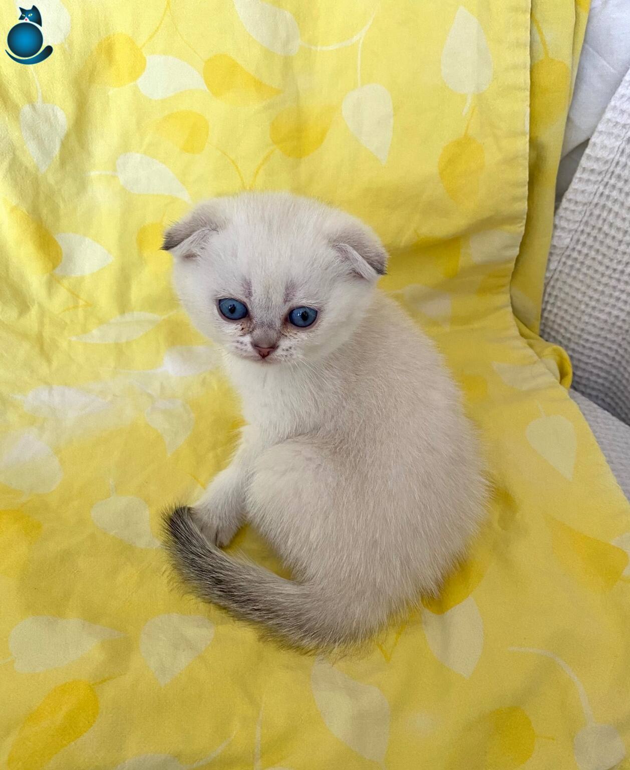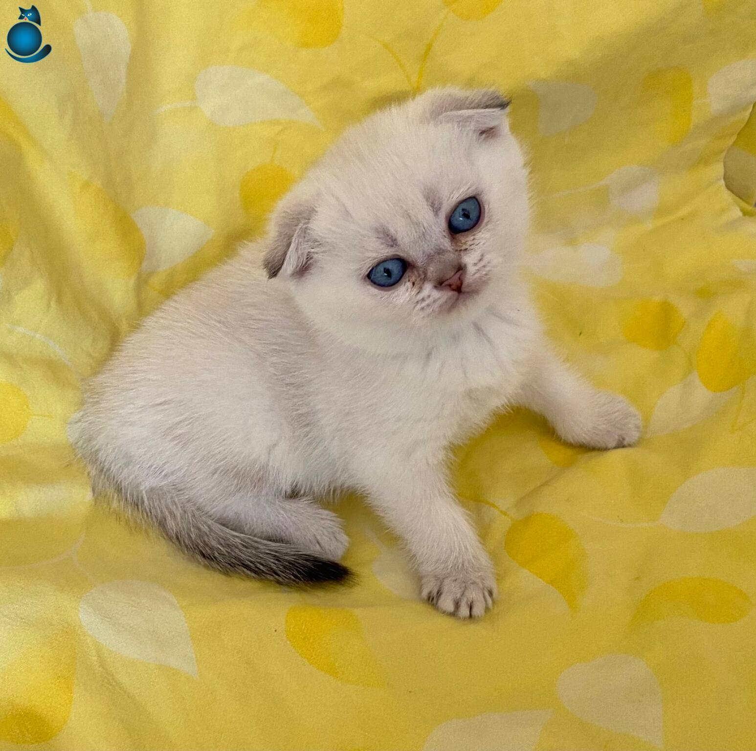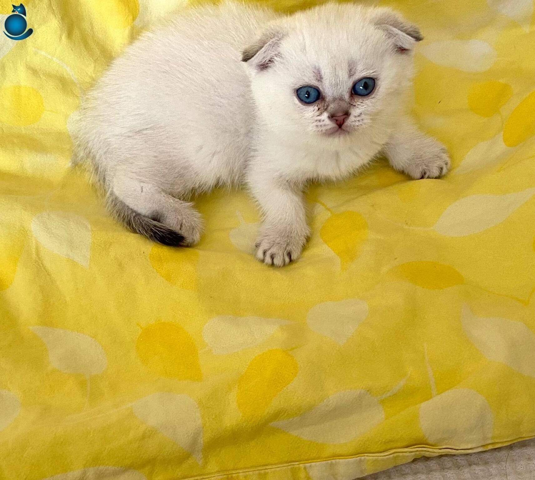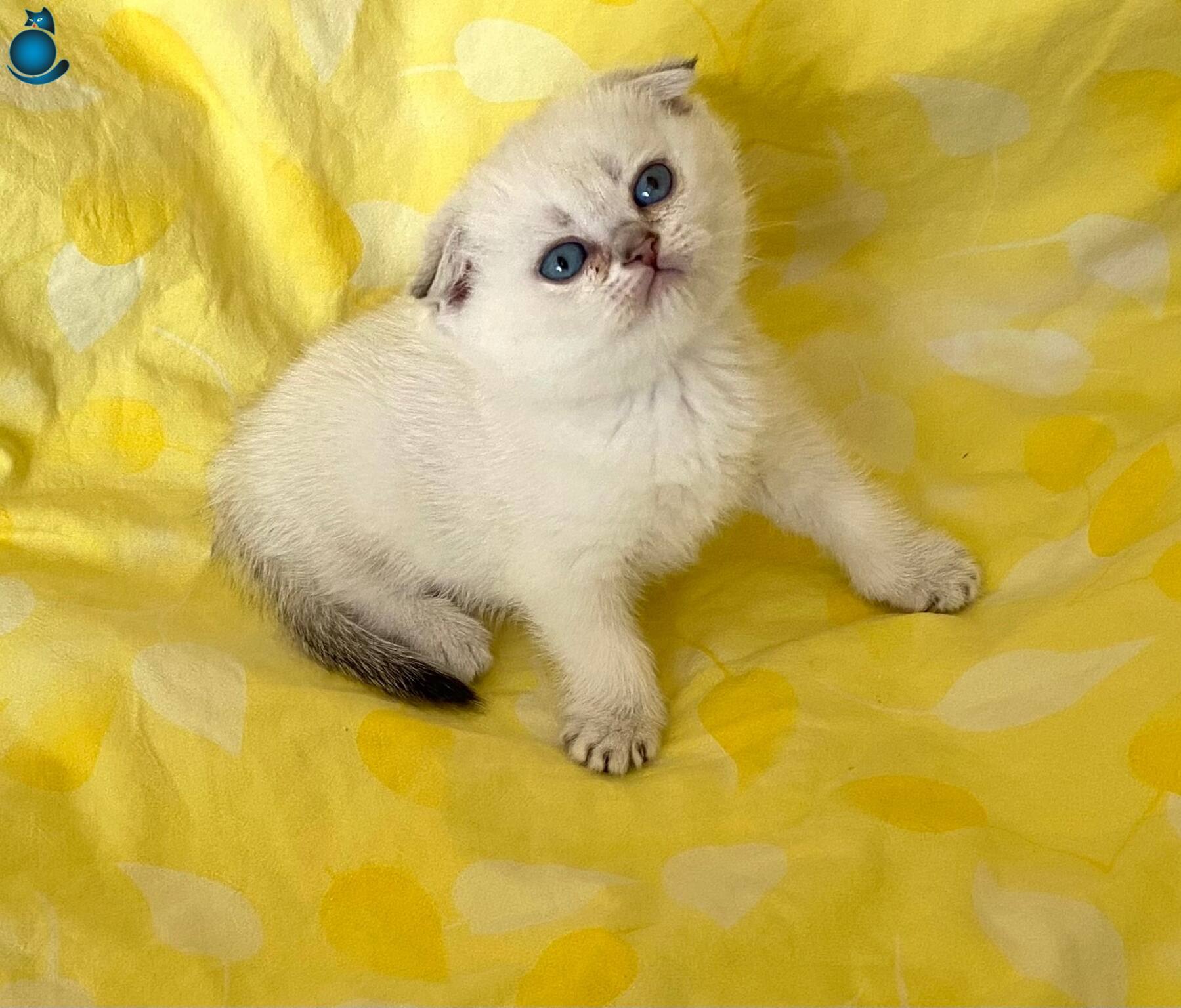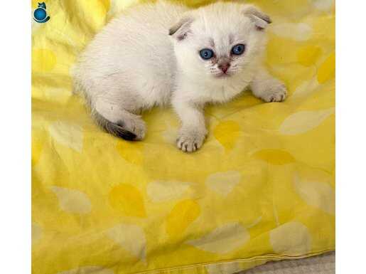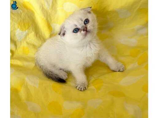 Safkan Silver Point NS1133 Scottish Fold kızımız, okyanus derinliğindeki mavi gözleriyle büyüleyici bir karaktere sahip. WC eğitimi tamam, mama yiyen, akıllı ve sosyal bir bebek.