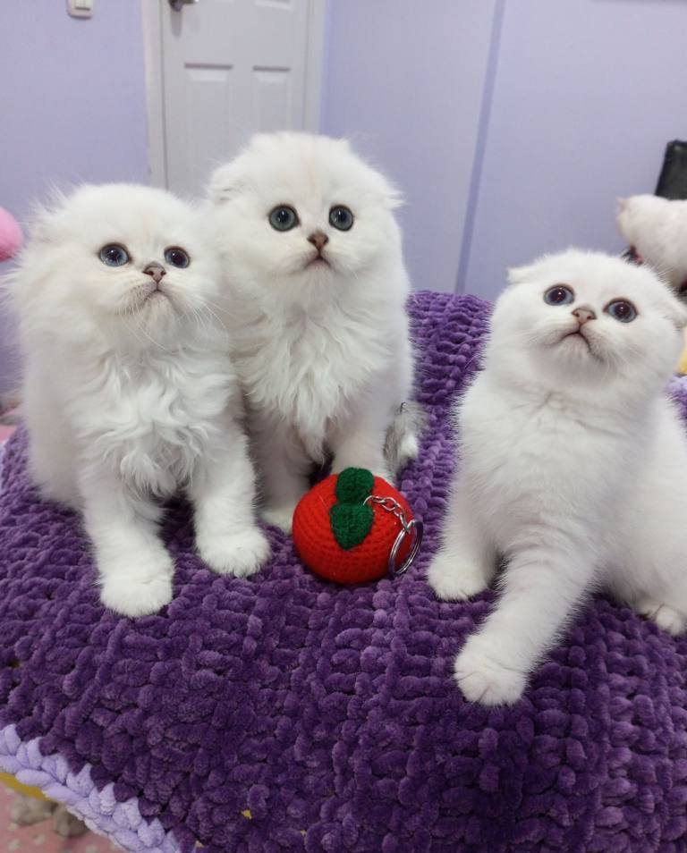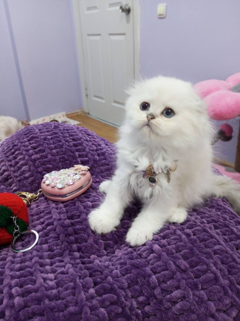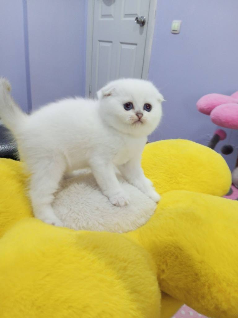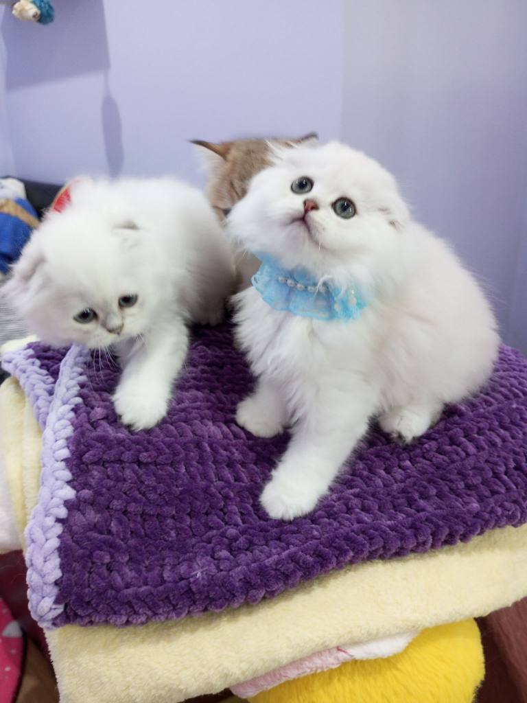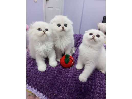 Scottish Fold yavrularımız gümüş tüy dokusu ve kıvrık kulaklarıyla ev ortamında sosyal yetişti.