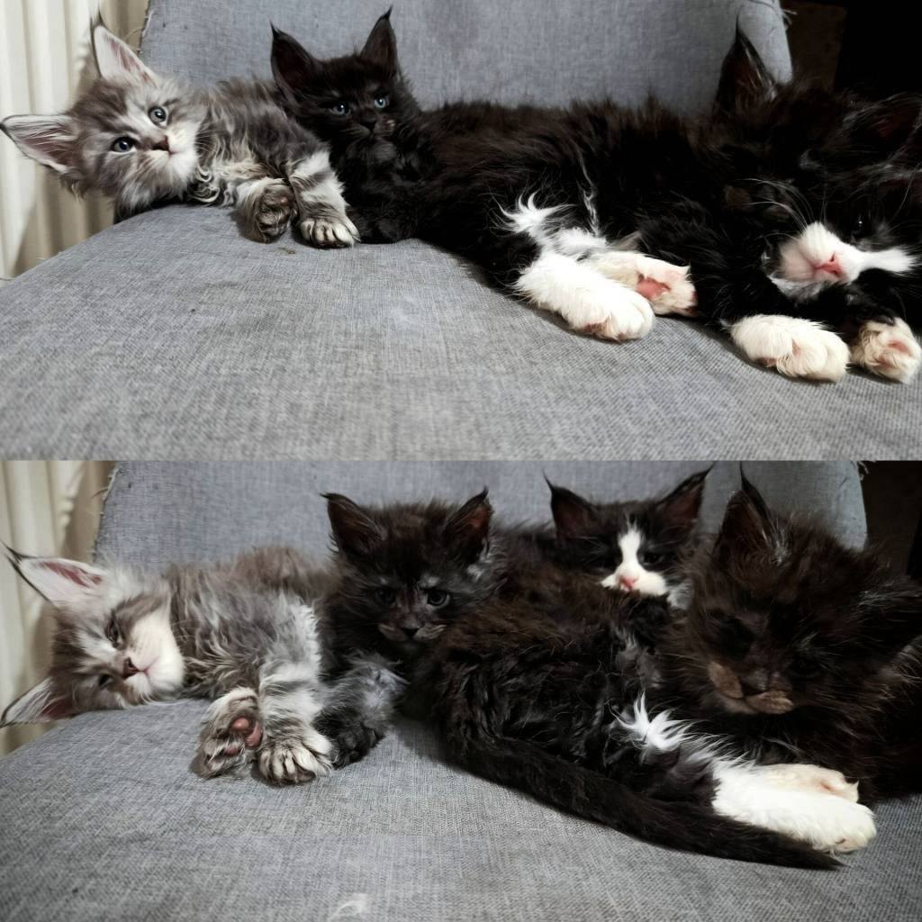 Safkan secereli Maine Coon yavrularım, iri kemik yapısı ve kulak uçlarındaki karakteristik vaşak tüyleriyle tam bir genetik miras örneğidir.