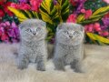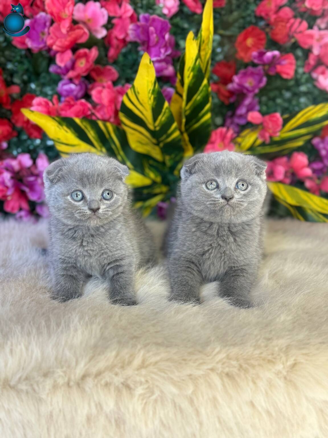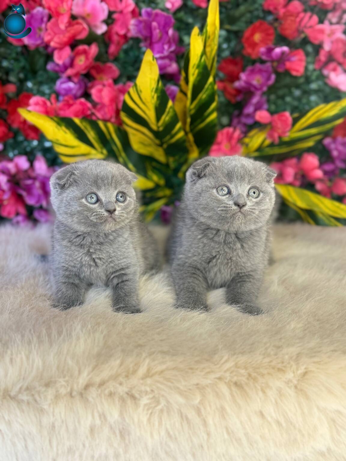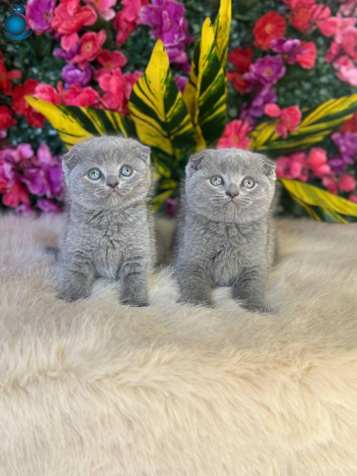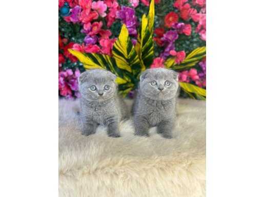 Gümüş gri tonlarındaki kusursuz kürkleri ve o derin, bilge bakışlarıyla bu 2 aylık Scottish Fold yavruları tam bir ev neşesi.