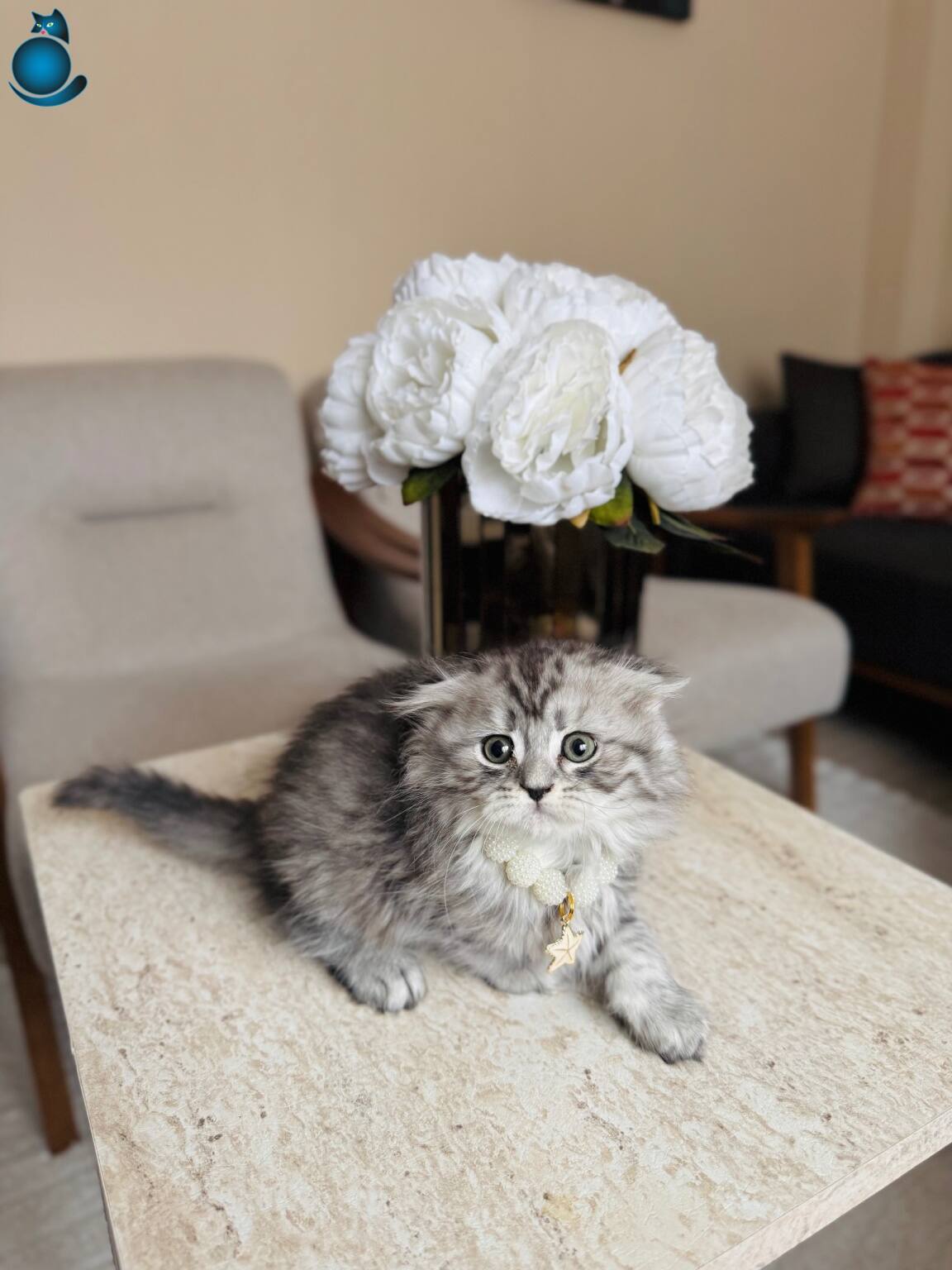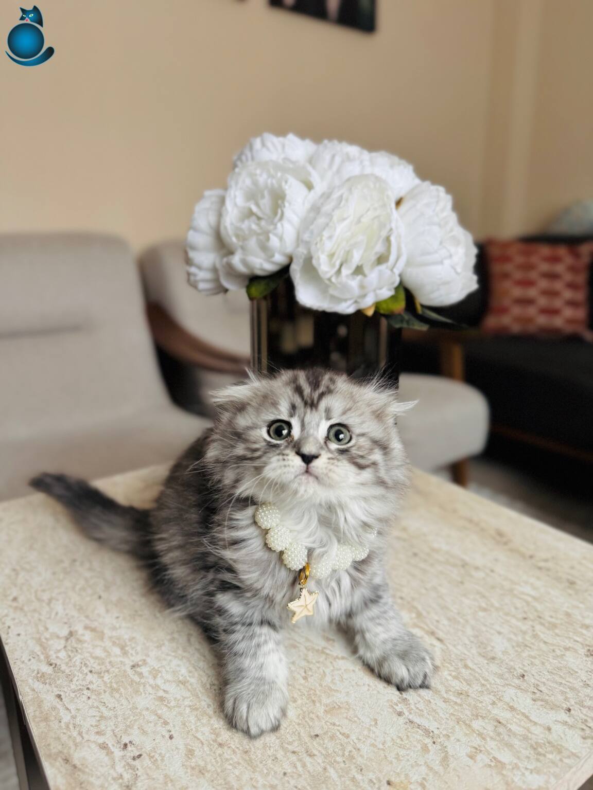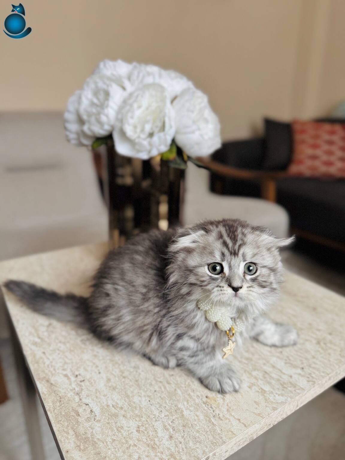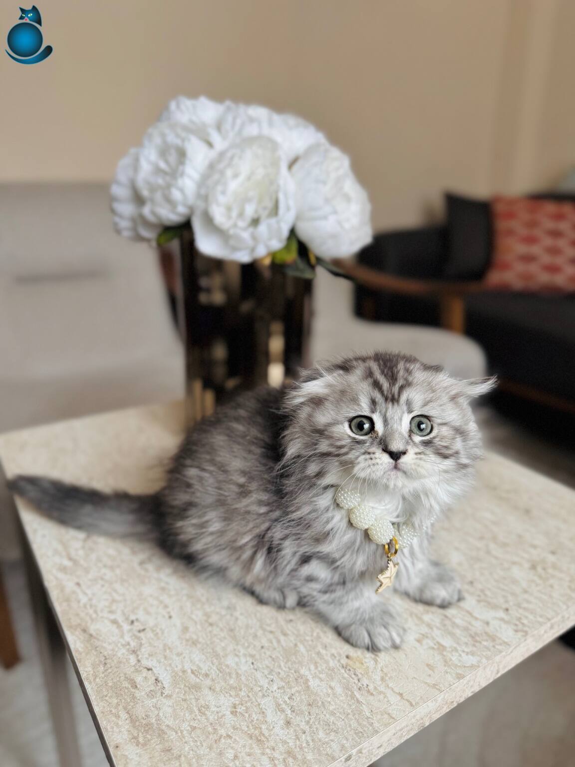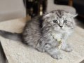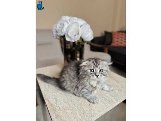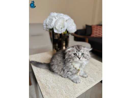 Gümüş rengi ipeksi tüyleri ve kıvrık kulak yapısıyla hayranlık uyandıran iki aylık Scottish Fold Longhair Silver yavrularımız yeni yuvalarını bekliyor. Kuru mama düzenine geçen, tuvalet eğitimini eksiksiz tamamlamış, iç ve dış parazit uygulamaları yapılmış dişi ve erkek miniklerimiz son derece oyuncu ve sosyal karakterdedir.