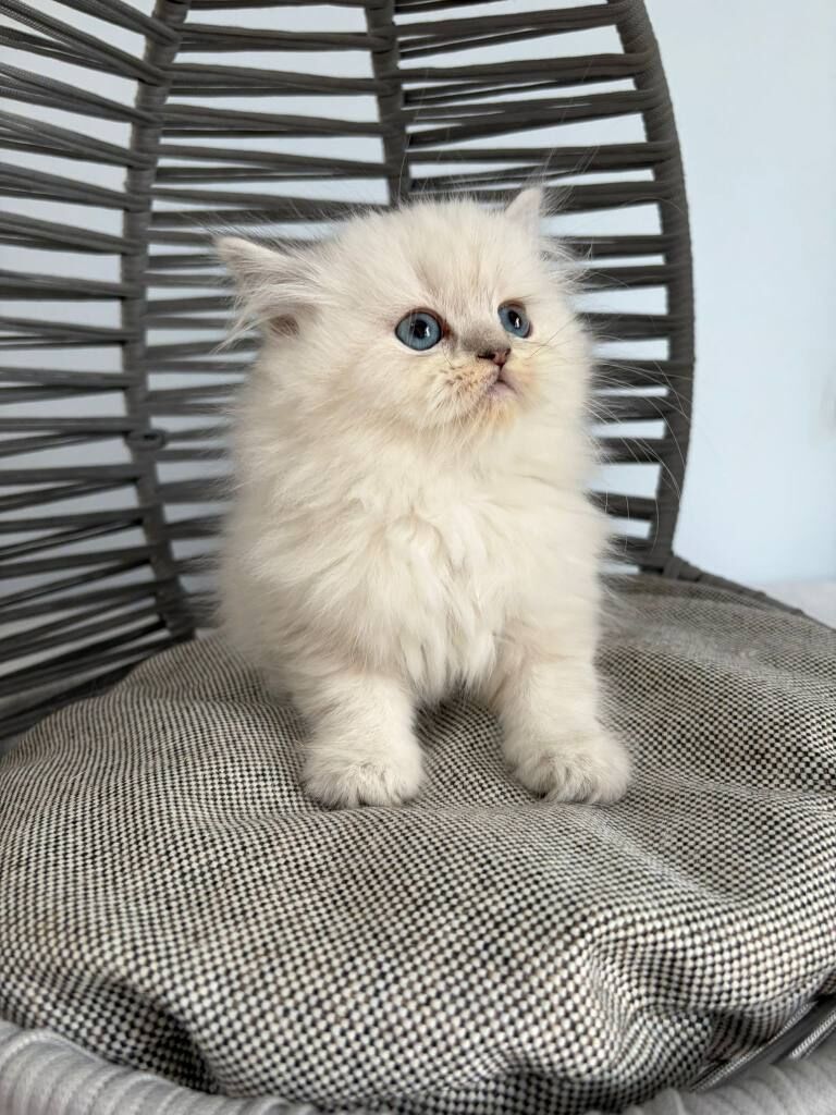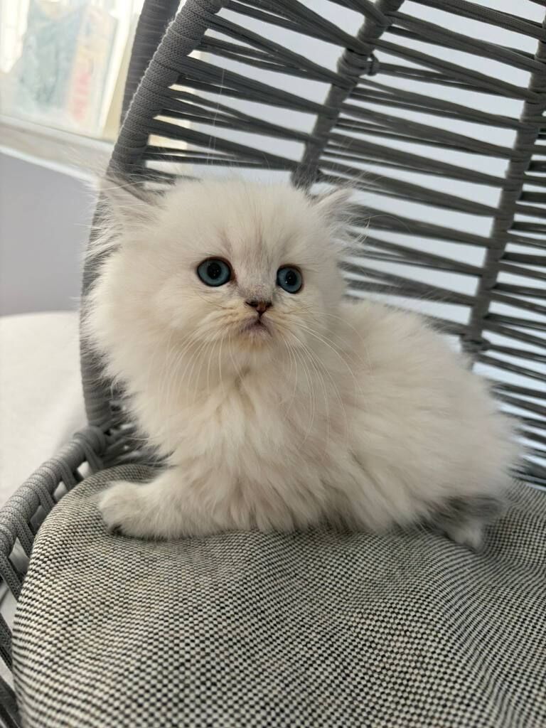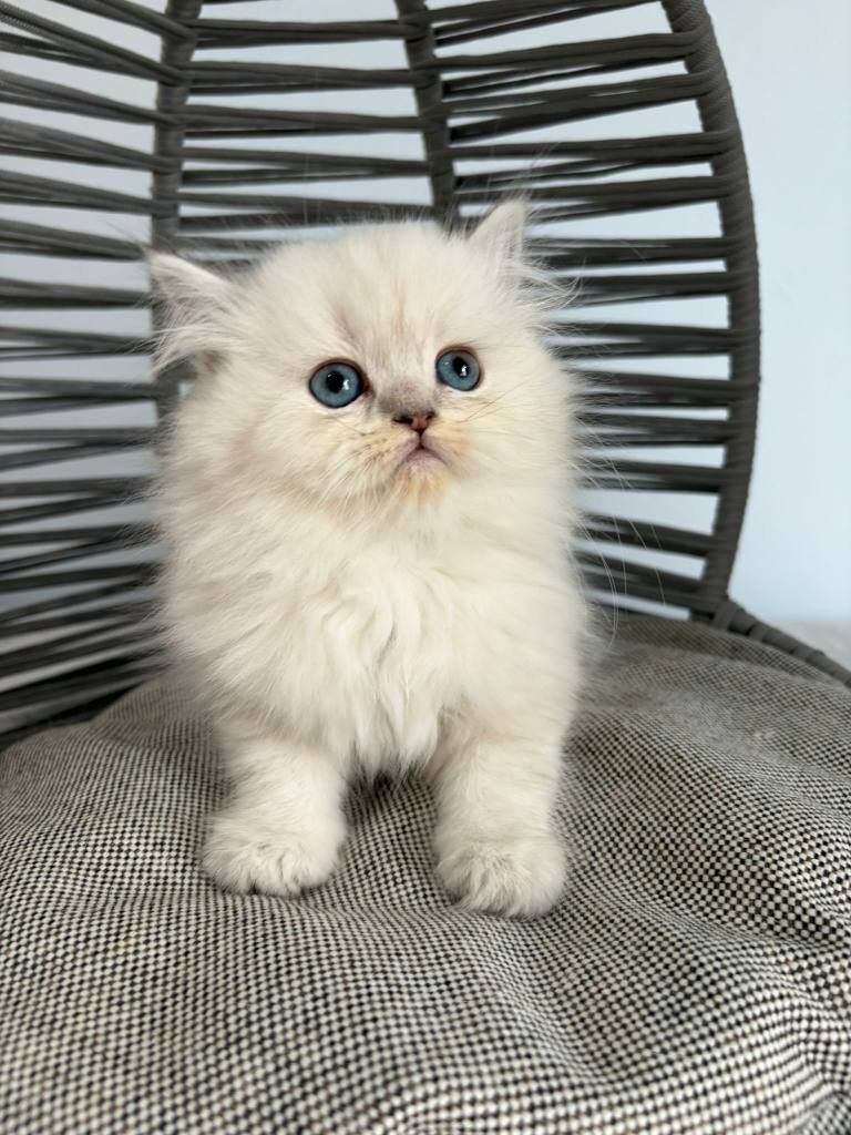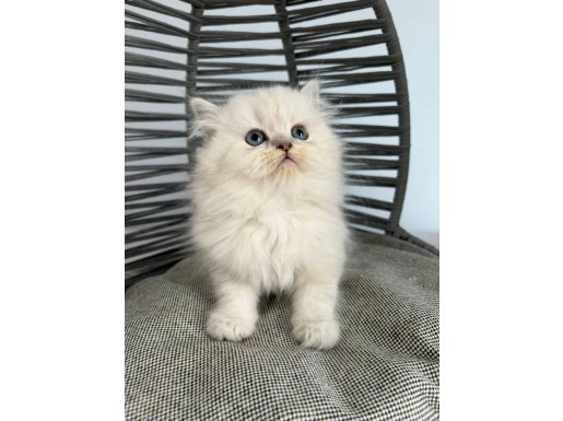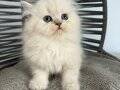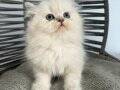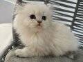 İki aylık, anne sütüyle beslenmiş bu British Longhair, kuru mamaya geçti ve kum eğitimini tamamladı.