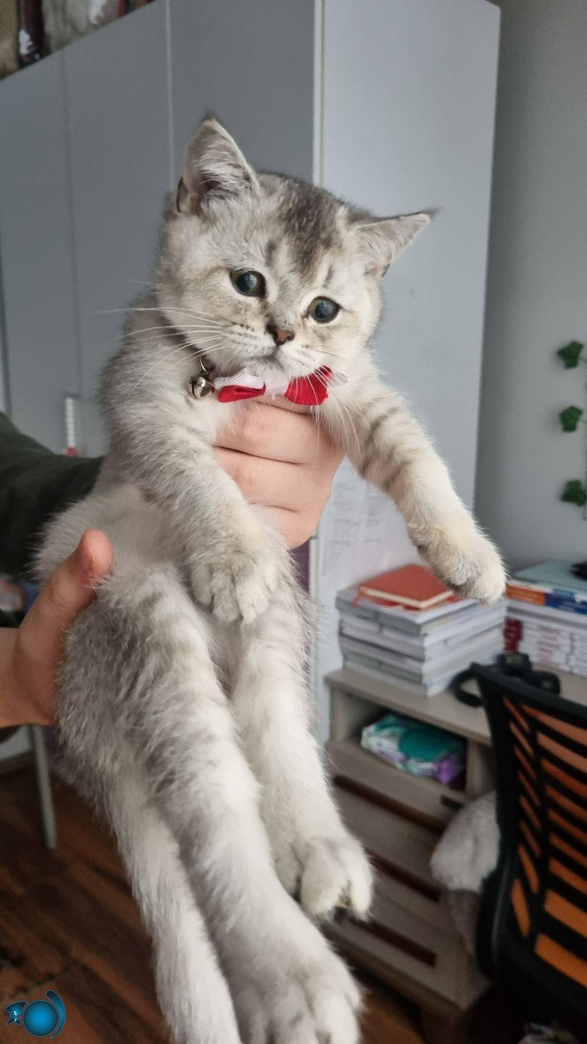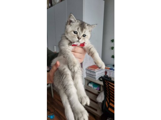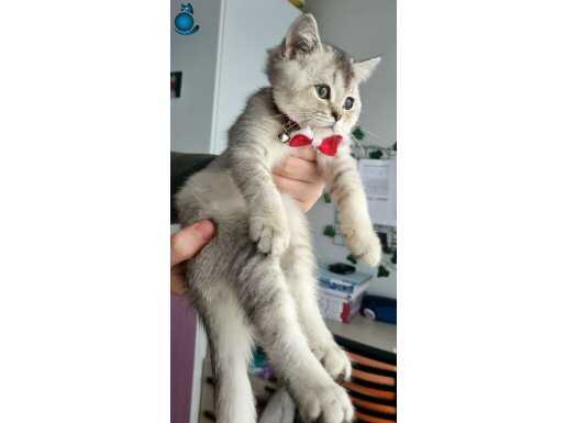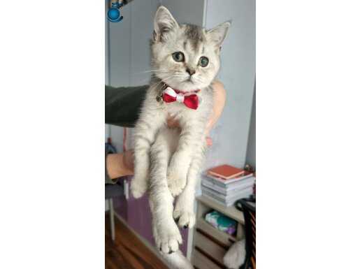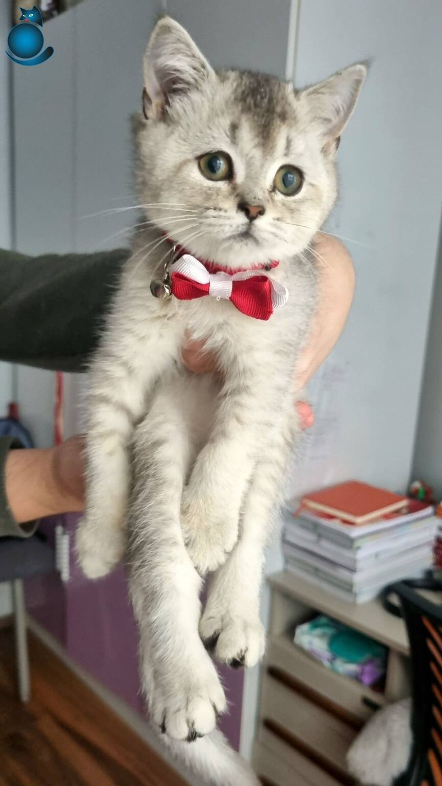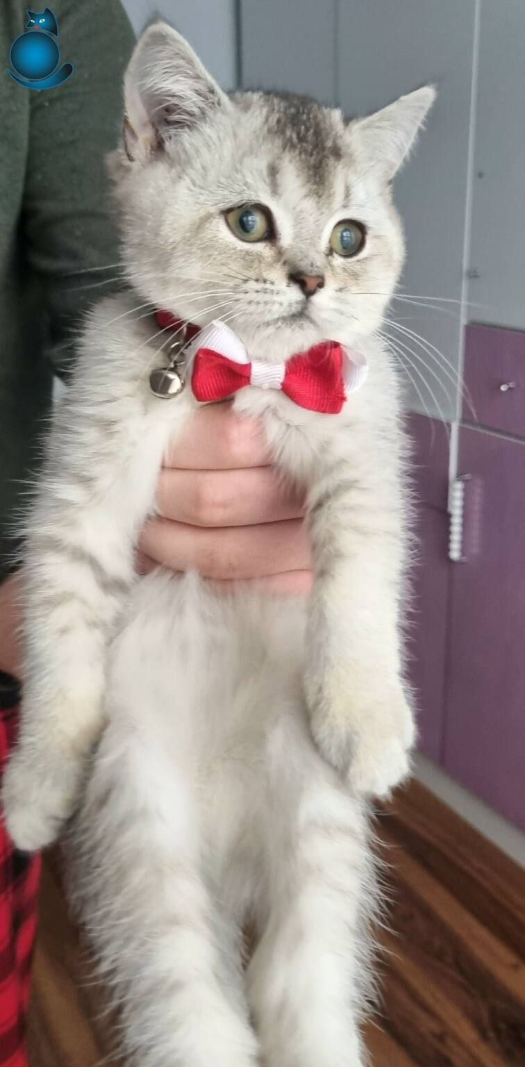Gümüş tüyleriyle büyüleyen, kırmızı papyonuyla adeta bir asalet timsali olan 3 aylık dişi British Shorthair Silver miniğimiz yeni yuvasını bekliyor. Çok uysal, zeki ve canayakın karakteriyle öne çıkan bu ufaklık, tuvalet eğitimi tamamlanmış şekilde tüm malzemeleriyle (taşıma çantası, mama kabı, tuvaleti, oyuncakları, tarağı, tırnak makası) birlikte teslim edilecektir.