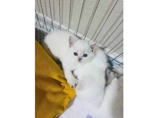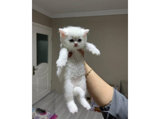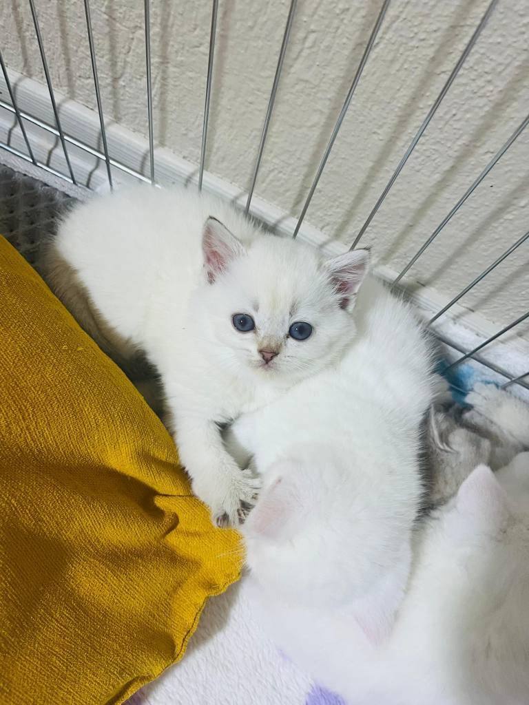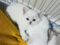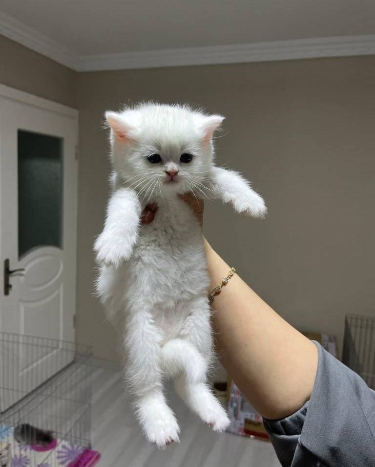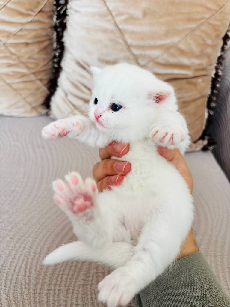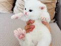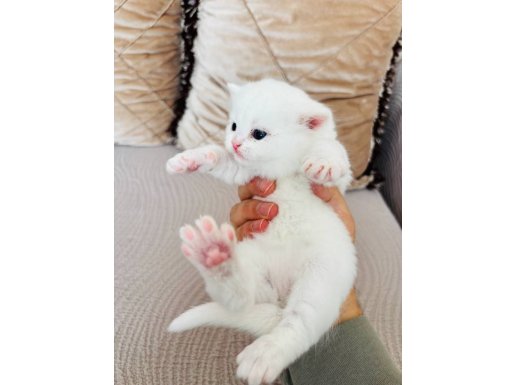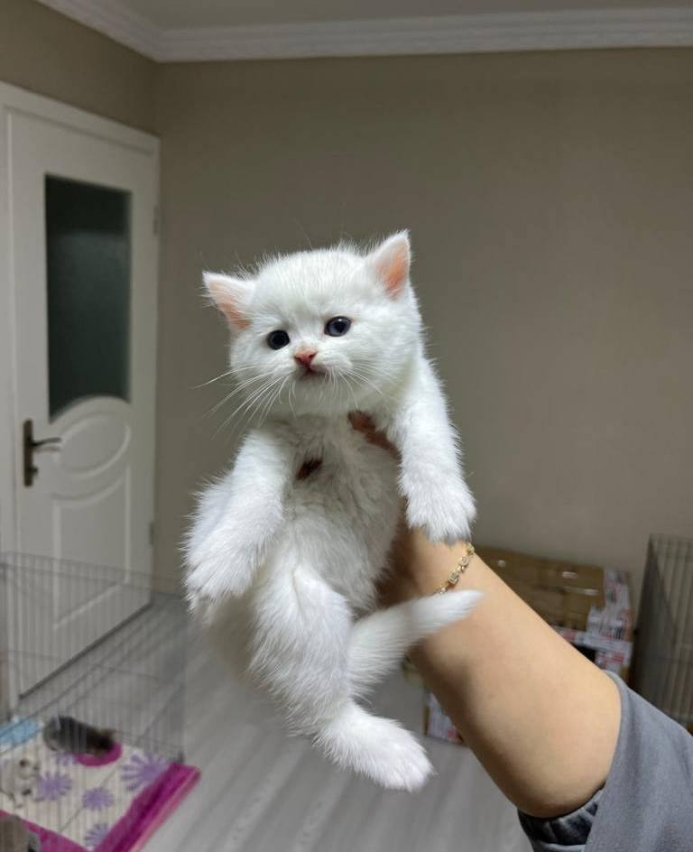 Mavi gözlü bu bembeyaz British Shorthair tam bir görsel şölen.