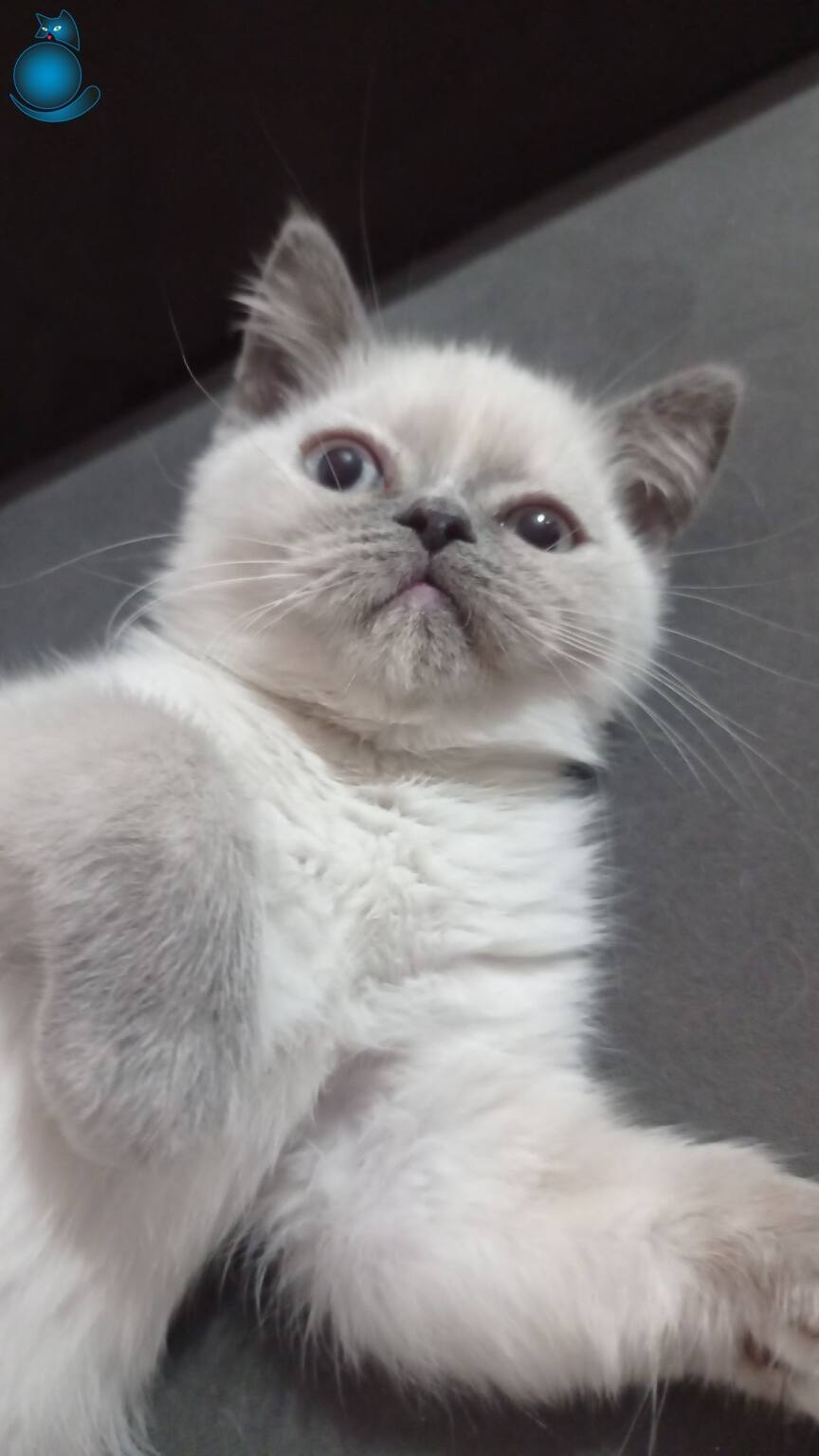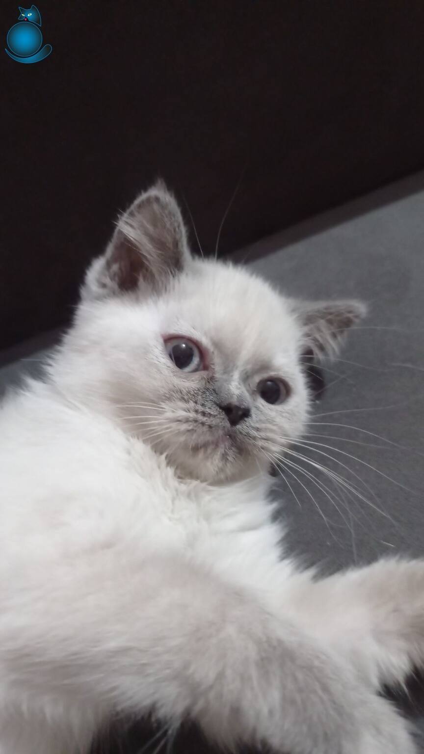Üçgen kulak, top kafa, gri burun blue point British Shorthair yavrumuz çok uysal ve sevecen bir kedi olup ömürlük ailesini arıyor.