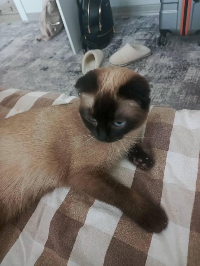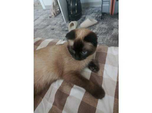 Ankara Çubuk lokasyonlu, 1 yaşında, koyu maskeli ve derin bakışlı bu Siyam kedisi cinsi uysallığıyla bilinir.