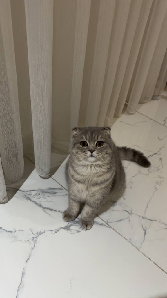 Antalya/Alanya’da yaşayan bu Scottish Fold, ev içindeki uysal karakteri ve melankolik bakışlarıyla tam bir sevgi yumağıdır.