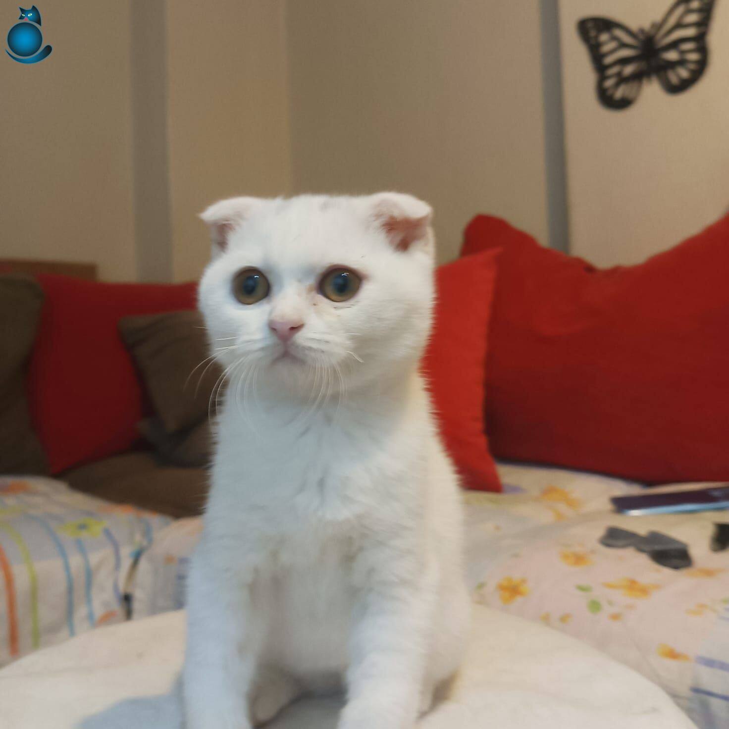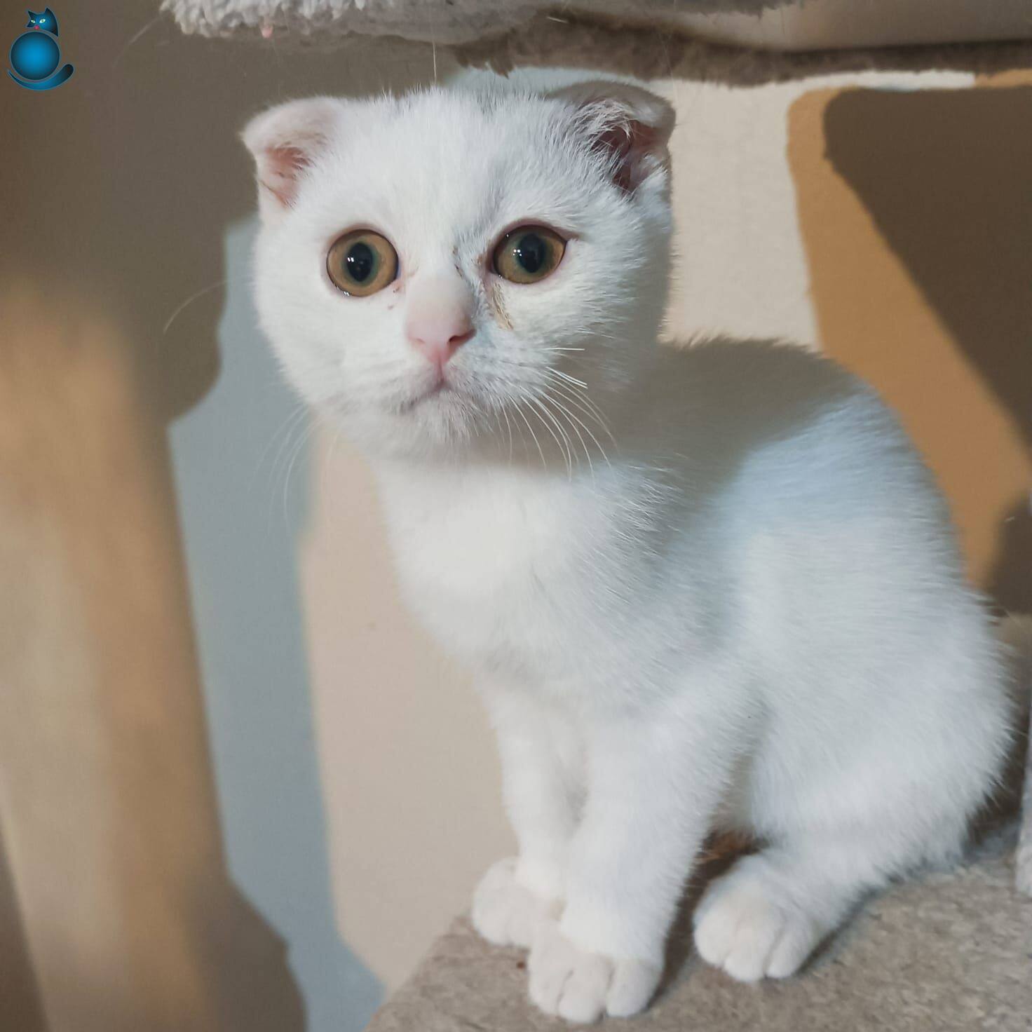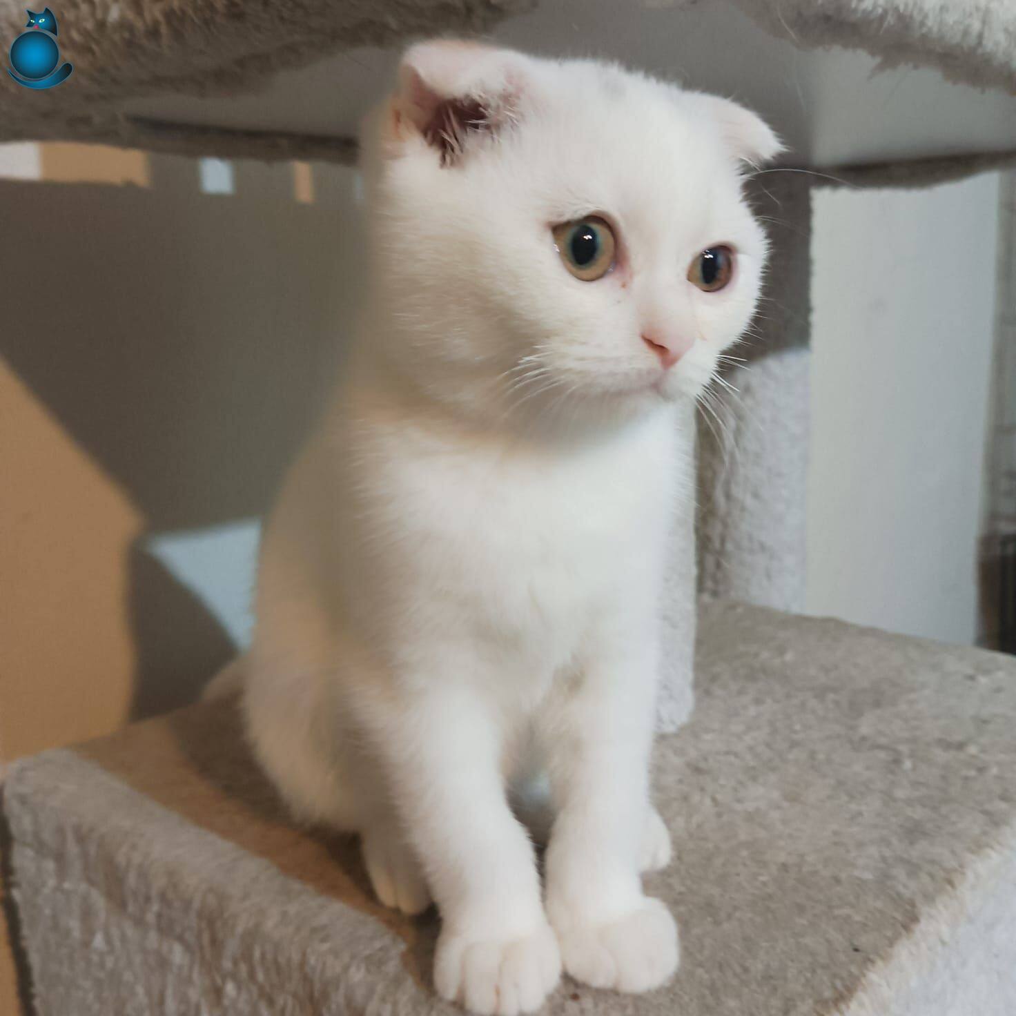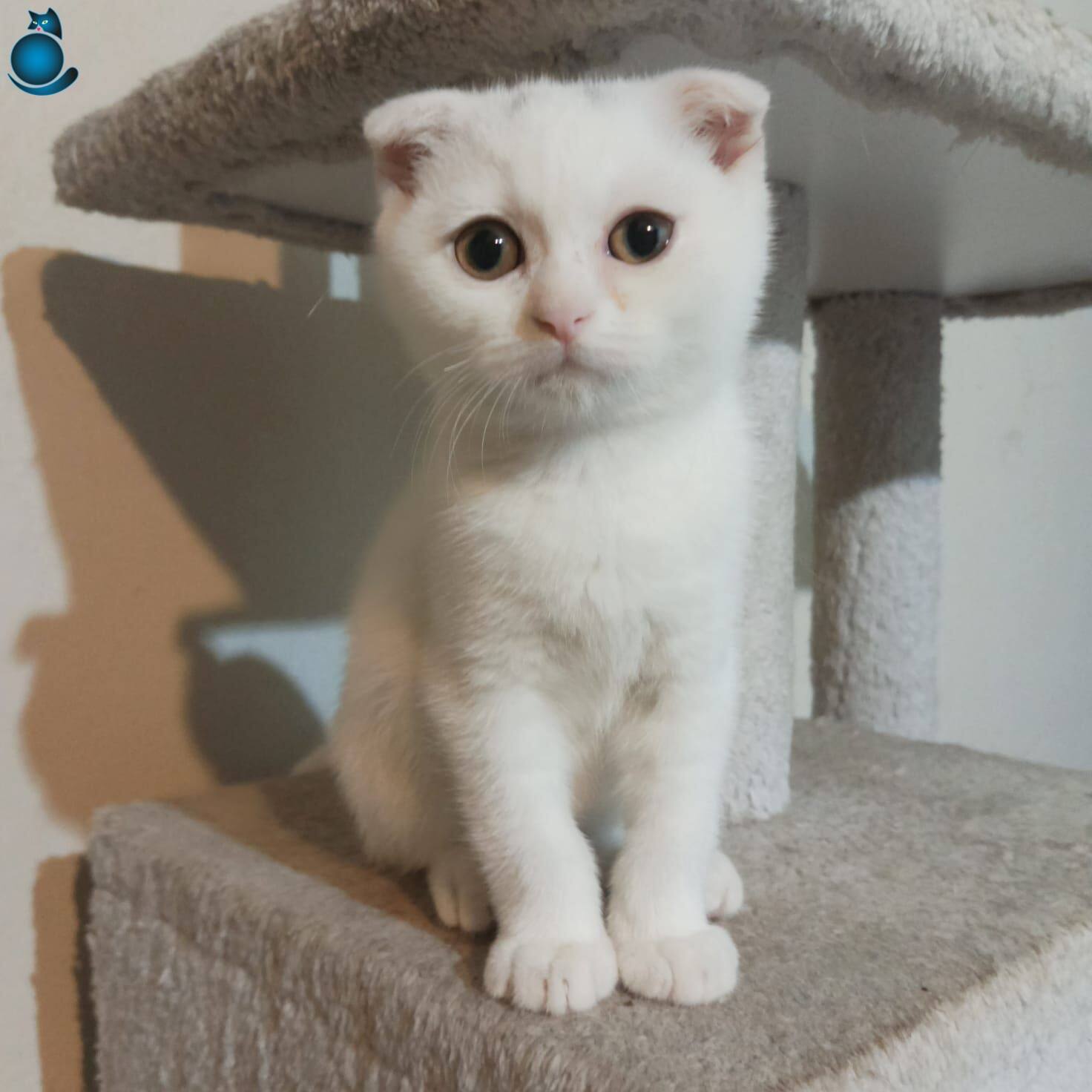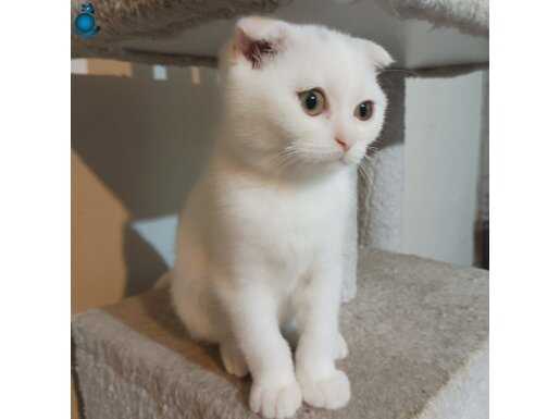 Ev ortamında sevgiyle büyümüş, tuvalet eğitimi tamamlanmış iki aylık Scottish Fold yavrumuz yeni yuvasını bekliyor. Kar beyazı ipeksi tüyleri ve karakteristik basık kulak yapısıyla dikkat çeken minik dostumuz, oyuncu karakteri ve uysal doğasıyla tam bir aile eşlikçisidir.