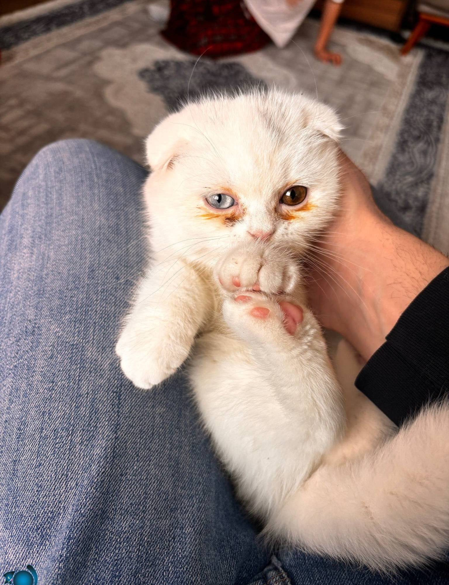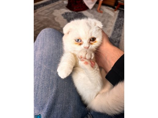 Scottish fold yavru oyuncu ve uysal farklı göz rengi mavi-kehribar eğik kulaklı tüm aşıları tamamdır tuvalet eğitimi verilmiştir.yanında herşeyi birlikte verilecektir mama kapları yatağı oyuncakları tuvaleti taşıma çantası…